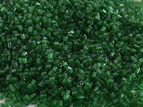 Transparent Green 2 Cut Beads/Glass Seed Beads (11/0-2.0 mm) (100 Grams) Standard Quality for Jewellery Making Beading Arts and Crafts and Embroidery.