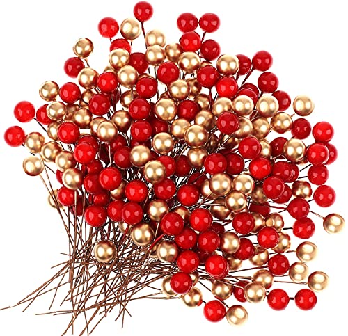 Christmas Vibes 50 Pcs Red Golden Christmas Holi Berries Fruit for Christmas Xmas Tree Decoration Wreath Making DIY Christmas Carft and Christmas Decoration Item