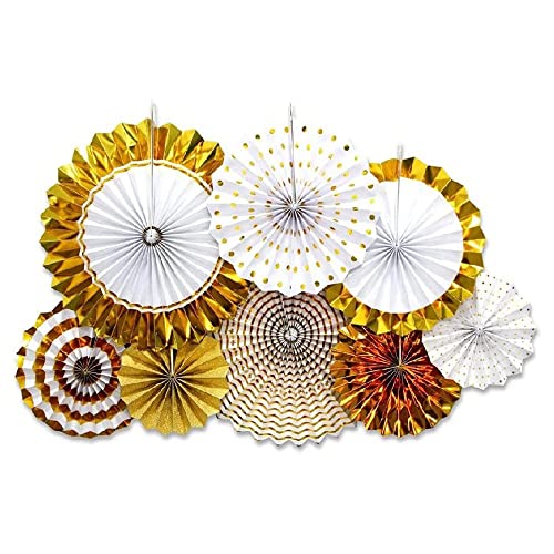 Pop The Party 8pcs Wall Decoration Set Golden Round Paper Fans Party Decoration for Birthday Wedding Baby Shower Party Backdrop Décor