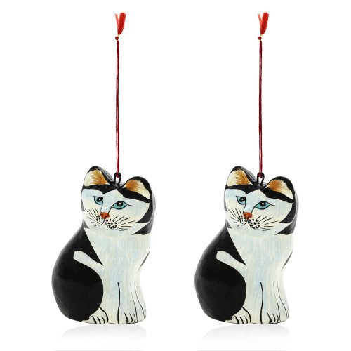 These striking and original cat Christmas tree ornaments are entirely hand made in Kashmir using traditional paper mache craft skills. Each one is unique being hand molded and hand painted. The quality of craftsmanship in this product is first class and you will be buying an item that will become part of your family traditions for many years to come. These lovely ornaments will bring a unique look to your decorated tree. If you are looking for an ideal gift for a child or a cat lover these characterful cats would be perfect.