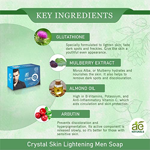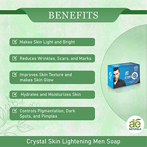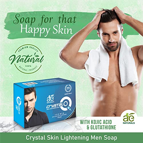 HomeBeautyBodyBath & ShowerSoapsAE Naturals Crystal Q Skin Whitening Soap For Men With Kojic Acid 2 X 135g Improves Skin Texture And Makes Skin Glow, Controls Pigmentation, Dark Spots And Pimples