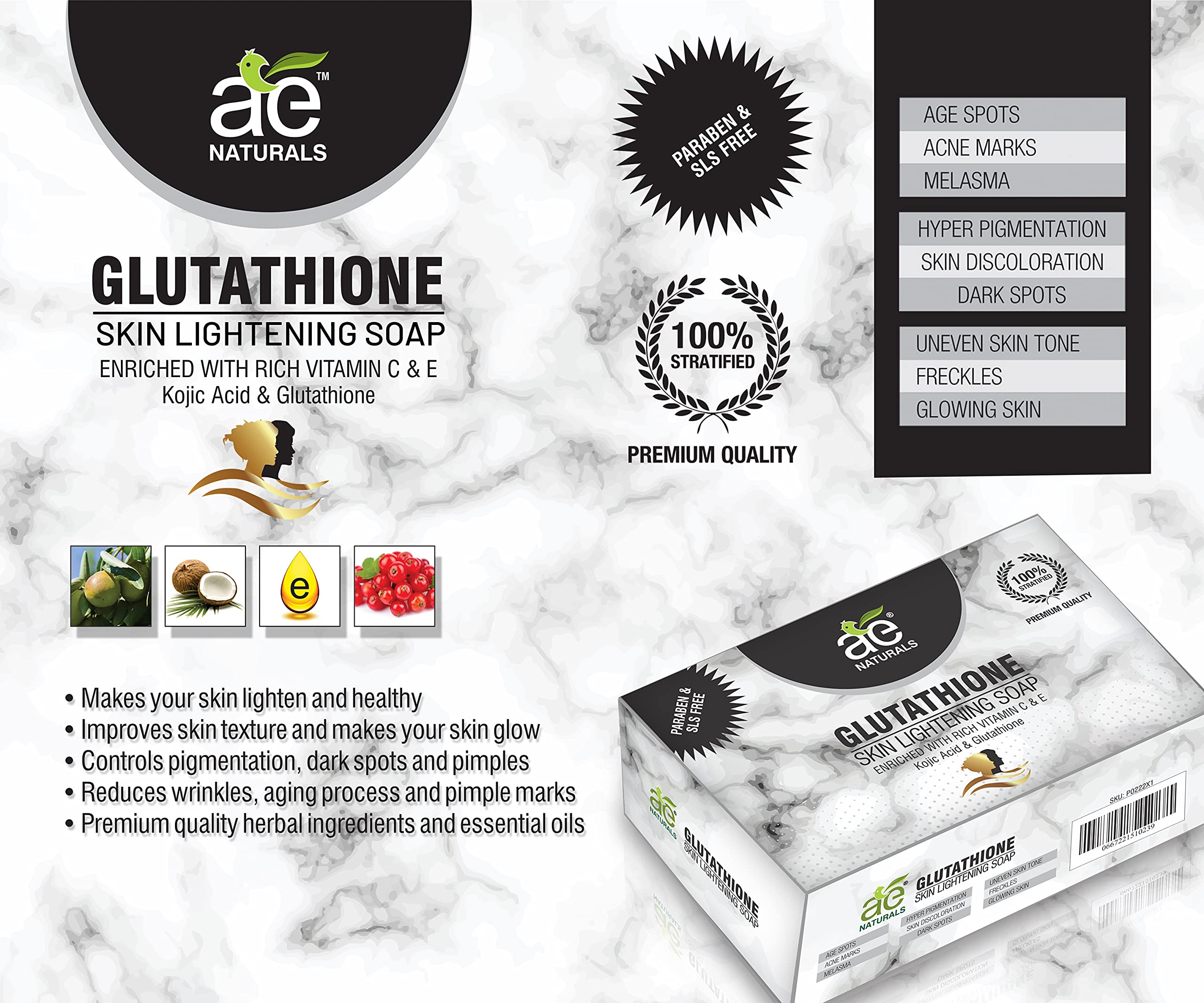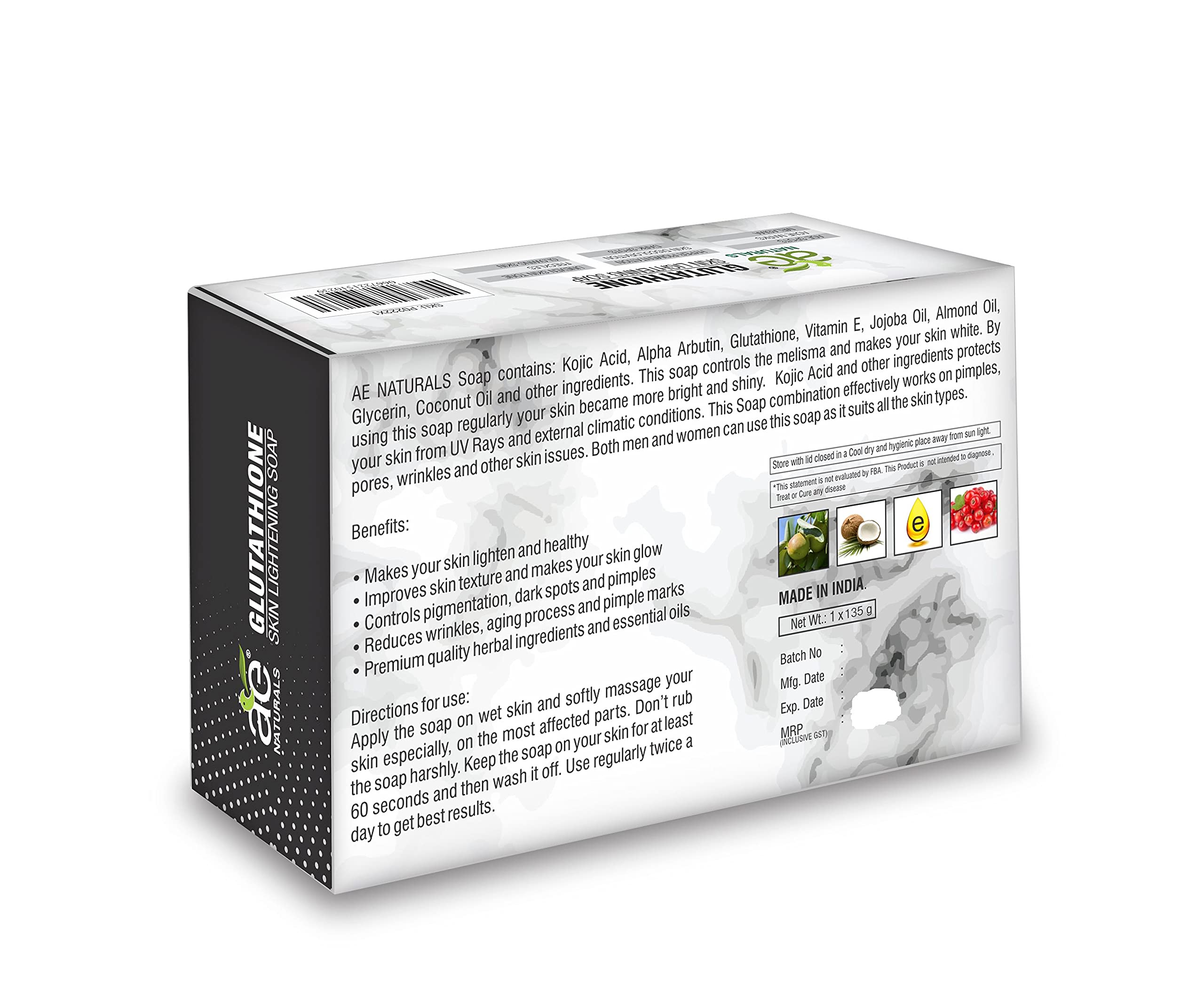HomeBeautyBodyBath & ShowerSoapsAE Naturals Soap Glutathione Skin Lightening Soap It Is Formulated With Activated Charcoal Kojic Acid Glutta thione Vitamin E And Coconut Oil 135g pack of 3