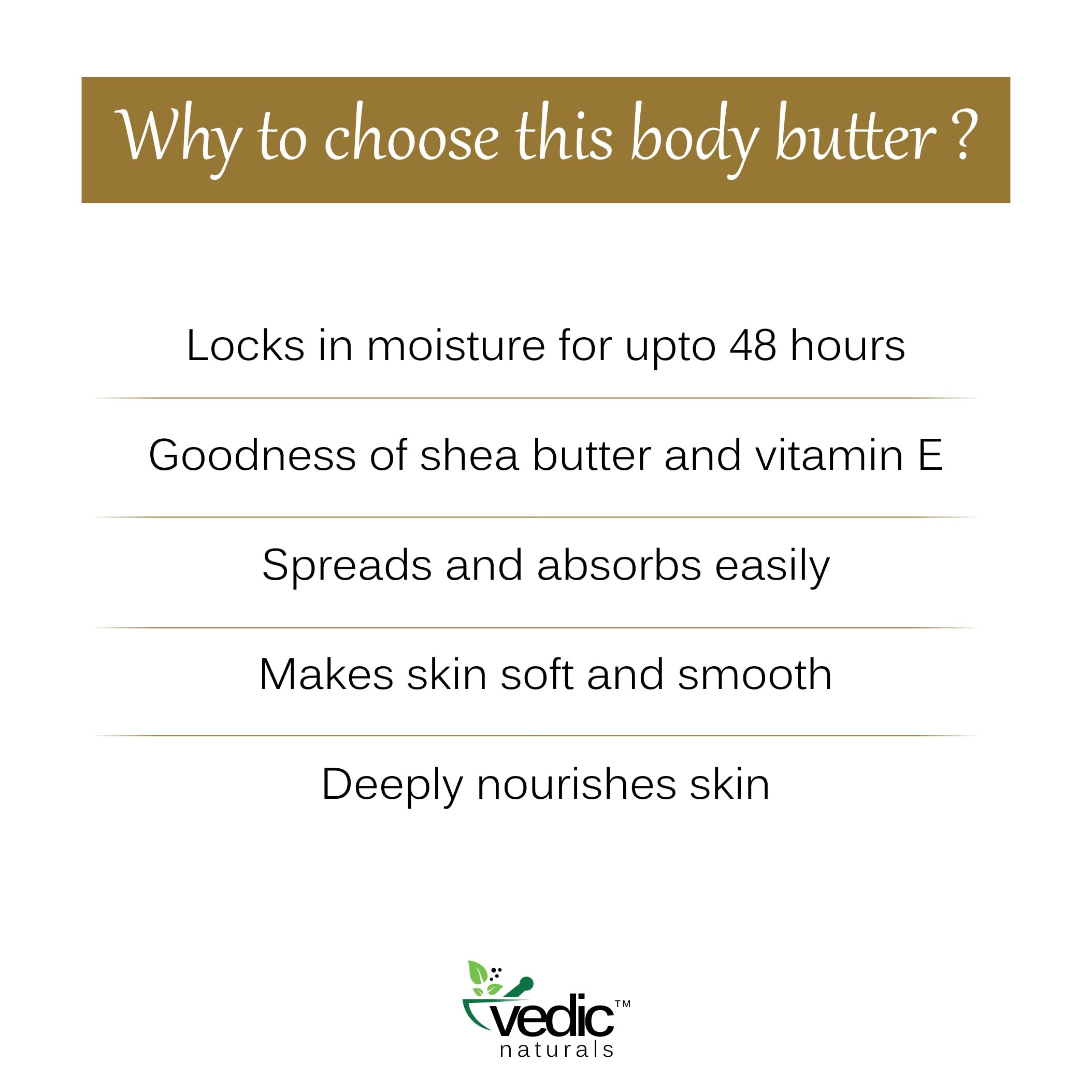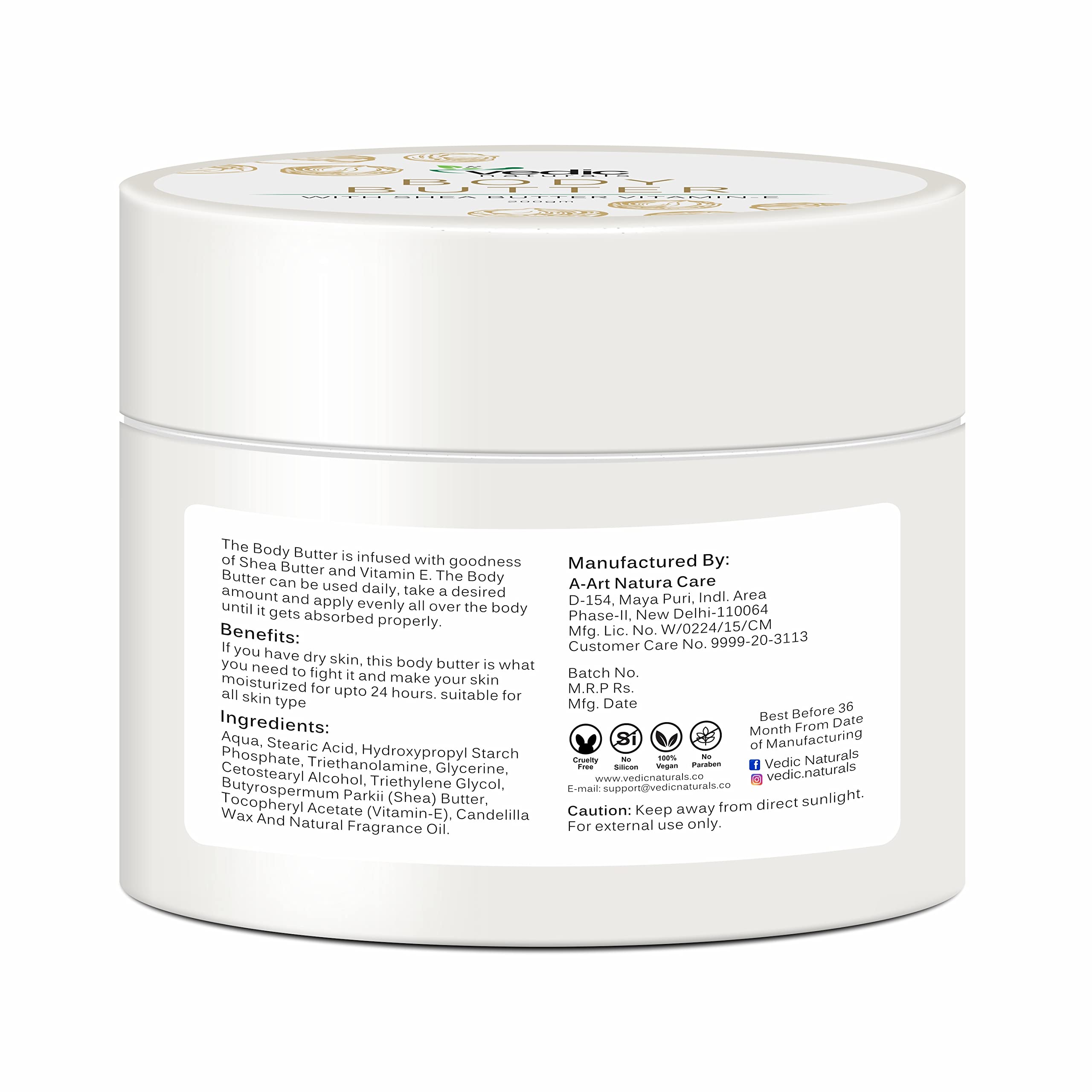 Vedic Naturals Body Butter Enriched With Shea Butter & Vitamin-E - 200gm | Deep Moisturizing For Dry Skin & All Day Moisture Lock | For All Skin Types & Healing Stretch Marks | 100% Organic