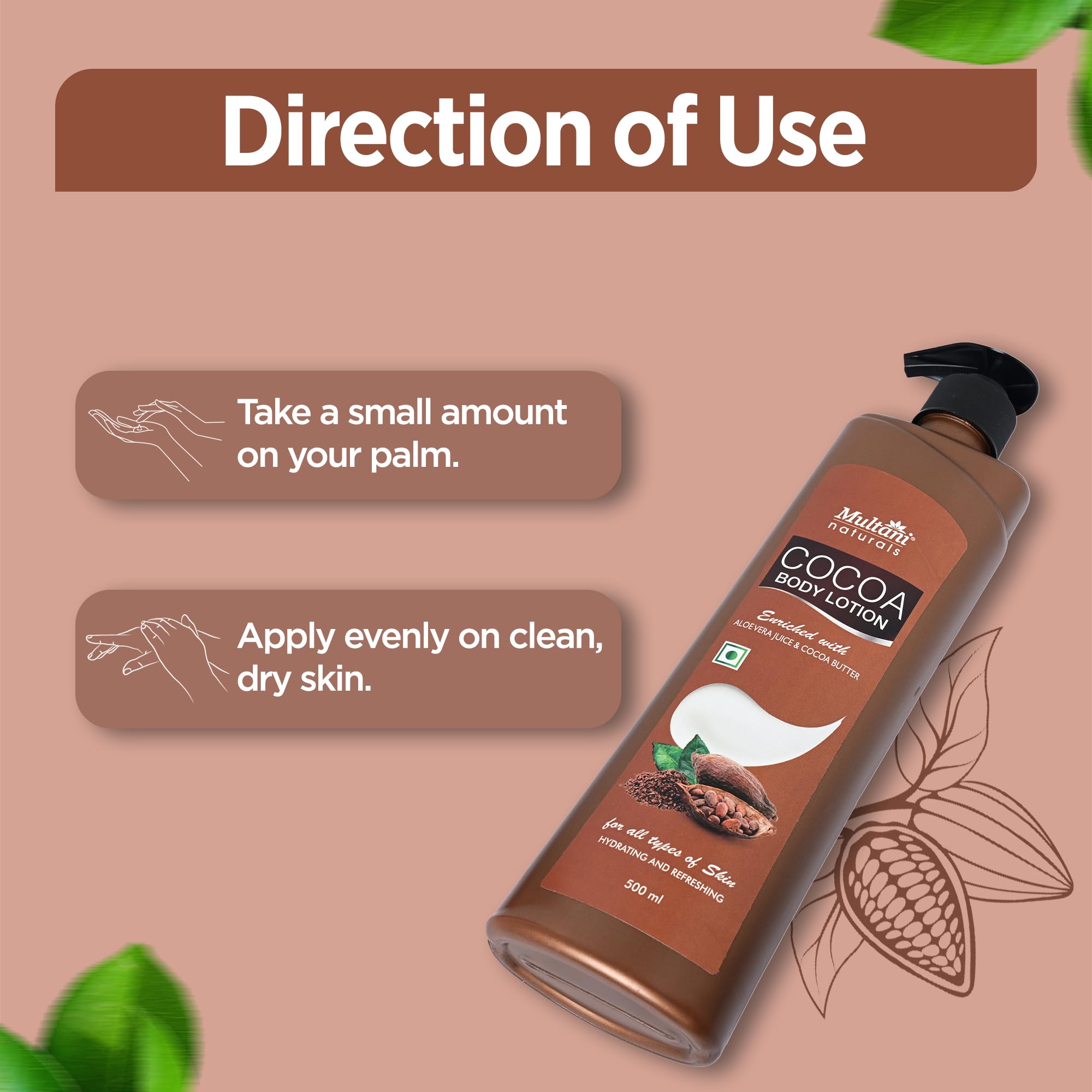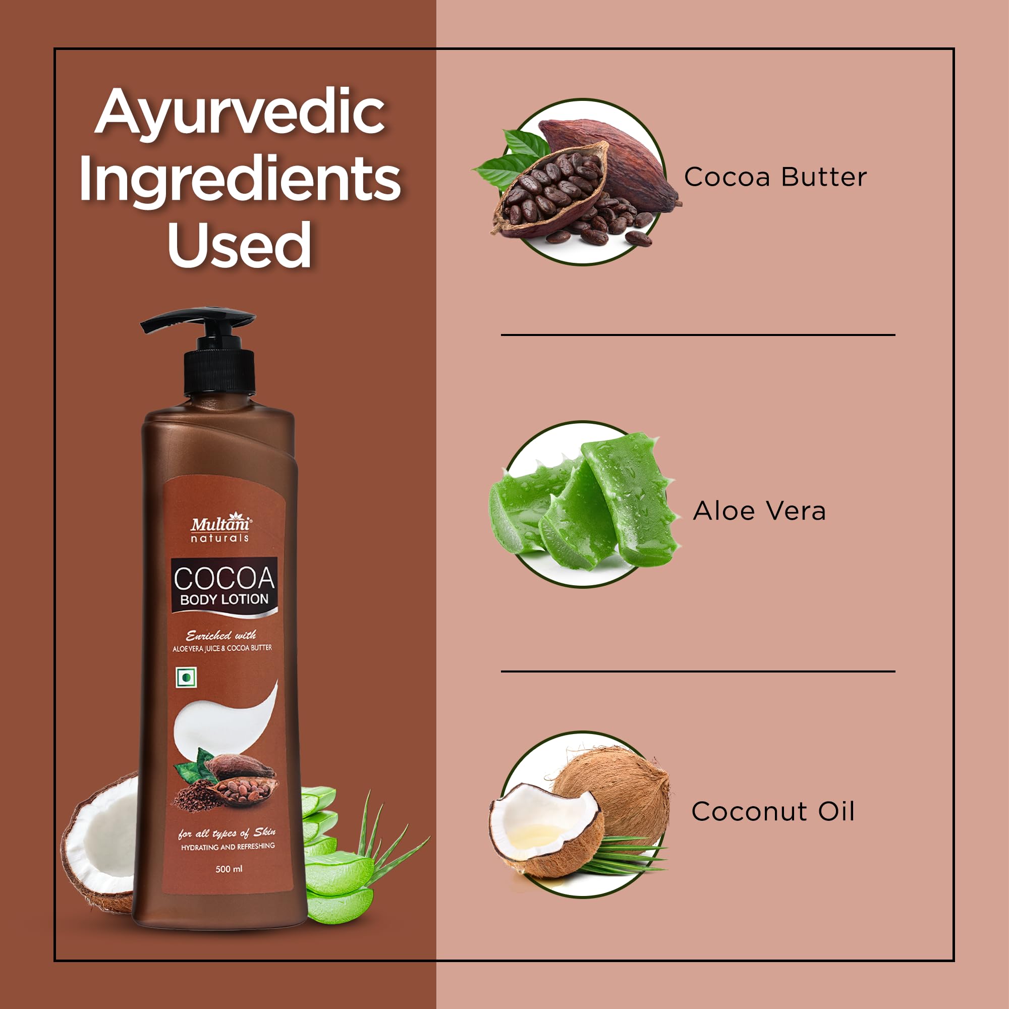 HomeBeautyBodyBody CareBody Lotions & MoisturizersMultani Naturals Cocoa Body Lotion | Moisturising Body Lotion for Women & Men | Hydrating & Refreshing | Helps in Dryness Reduction & Softens The Skin | Paraben & SLS Free | 500 ml (Pack of 2)