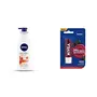 Nivea Body Lotion, Extra Whitening Cell Repair SPF 15, For All Skin Types, 400ml & Lip Balm, Fruity Blackberry Shine, 4.8g