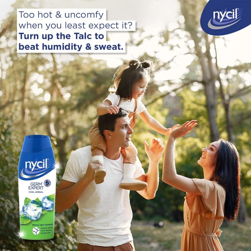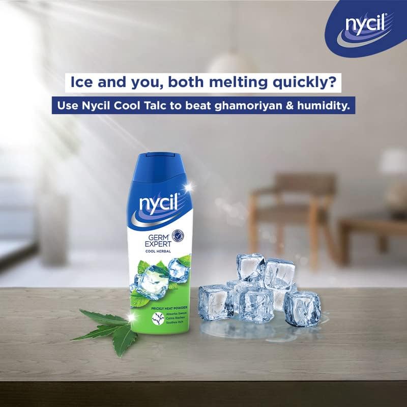 Nycil Germ Expert powder by Zydus Wellness with a heritage of 60+ years is a trusted Indian household brand. It is known to help fight prickly heat skin problems such as rashes and irritated skin caused due to hot and humid weather. This is a pack of Nycil Cool Classic Prickly Heat Talcum Powder 150 g with free Nycil Germ Expert Cool Herbal Prickly Heat and Cooling Powder 50 g. These Cool Classic and Cool Herbal talcum powders are cooling powders that help absorb sweat calm rashes and soothe itch. Nycil provides expert germ protection and visible results from prickly heat and other skin problems. Cool Classic has a soothing fragrance that helps fight body odour arising from sweating. A higher concentration of neem oil gives it antibacterial properties to help fight against skin problems. Explore all the prickly heat variants in talc format viz. - Classic Cool Gulabjal Cool Aloe Cool Herbal Cool Lime and Cool Sandal. It also comes in convenient to use and carry spray format - Nycil Soothing and Refreshing Body Mist