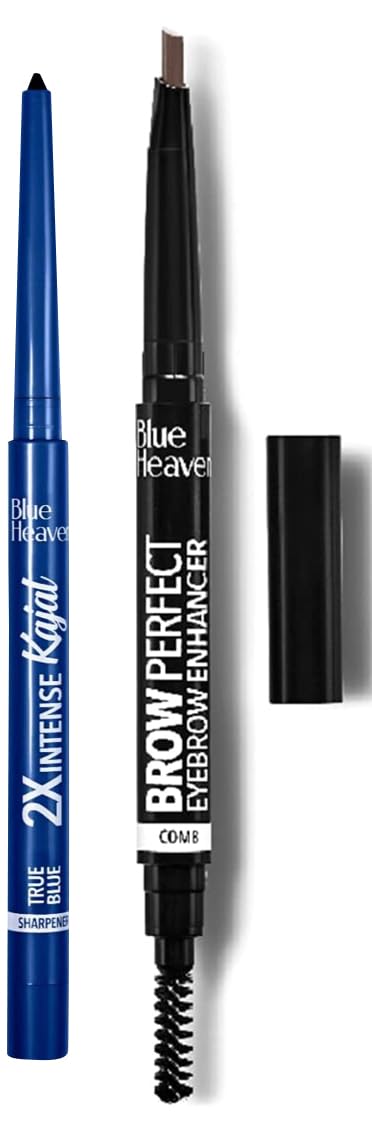 Blue Heaven Artisto Eyebrow Enhancer Pencil & Styler Honey Brown0.30gContain special ingredients loaded with natural vegetable oil that shapes and nurture your eye brow perfect blend of pigment and moisturiser in retractable pencil form makes very easy to use and carry eyebrow pen with spoolie slant tip for to achieve precise shape of eyebrow smudge proof waterproof long lasting upto 5 hours & crease proof formula.Blue Heaven Matte Finish Soft Kajal Eyeliner (Blue 0.31g)Let your eyes do the talking with the upto 24HR stay Blue Heaven Intense Kajal. Get the deepest colours and the boldest look that wont smudge or fade with water. Enriched with aloe vera and infused with antioxidant properties of gingko extract Blue Heaven 2x Intense Kajal cares for your eyes in the gentlest way. Comes with a built-in sharpener so you can sharpen the tip whenever needed.