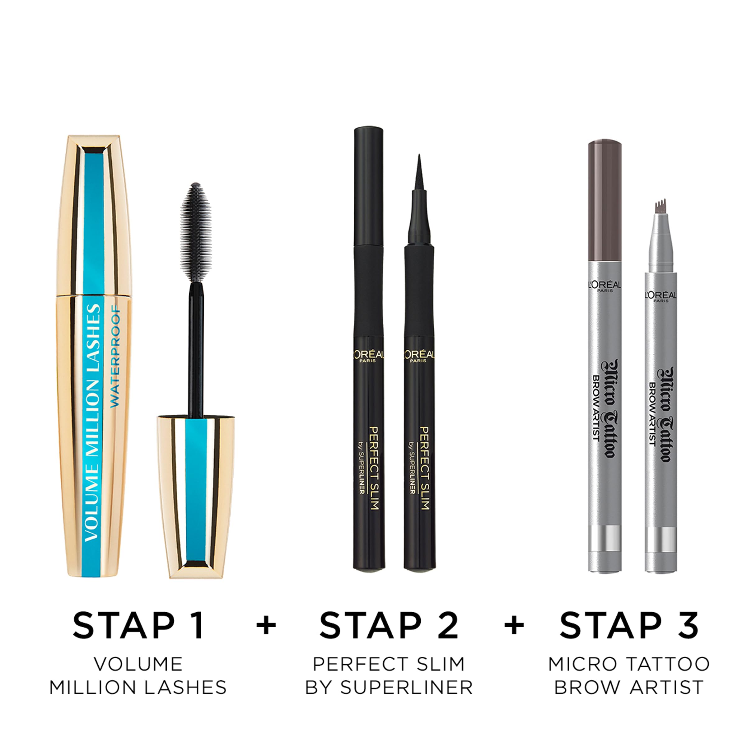 Add definition volume and length to your lashes with Voluminous Million Lashes mascara by L'Oral Paris India. The millionizer brush gives a fanned out lash-effect and coats your lashes evenly. The in-built wiper removes excess mascara which avoids clumping of the eyelashes. Voluminous Million Lashes glides on smoothly and lasts all day while thickening and separating every lash for a clump-free smudge-free look. L'Oral Paris India offers the complete range of makeup. You can volumize and lengthen your lashes with our collection of mascaras achieve sleek lines with smudge-proof eyeliner add natural looking definition to your brows and discover eyeshadow palettes. Create your perfect eye makeup look with L'Oral Paris India!. Millionizing brush which results in easy application. Avoids clumping of the lashes. Gives a fanned-out lash effect. Suitable for sensitive eyes and contact lenses. Waterproof mascara.