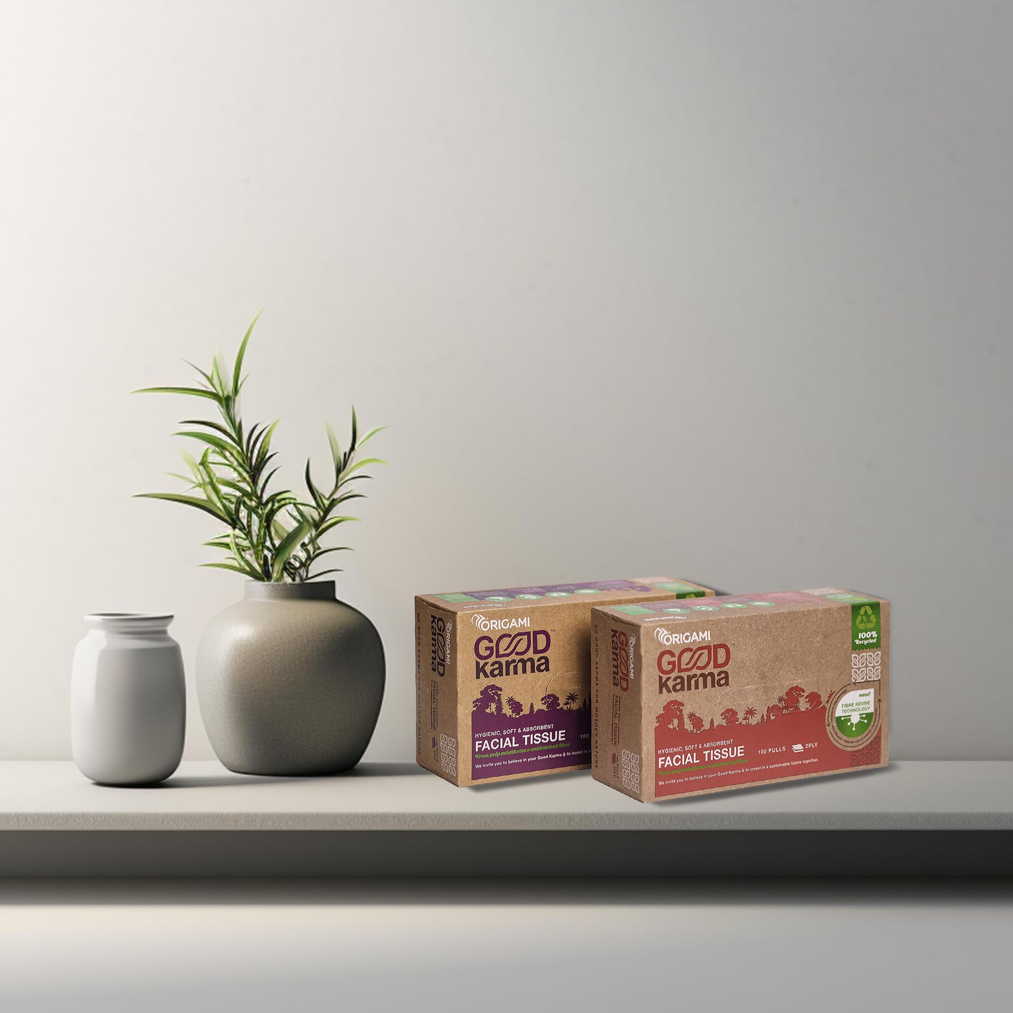 Enjoy the comfort of our Extra Soft and Thicker Facial Tissue made to be gentle on your skin. It won't fall apart on moist skin ensuring safe and hygienic use for skincare and makeup removal. Made from recycled paper it's free from inks dyes harsh chemicals and brightening agents. Easy to use and versatile it's great for personal care bedside dressing tables offices and cars. Elevate your routine with this soft pure and versatile tissue.
