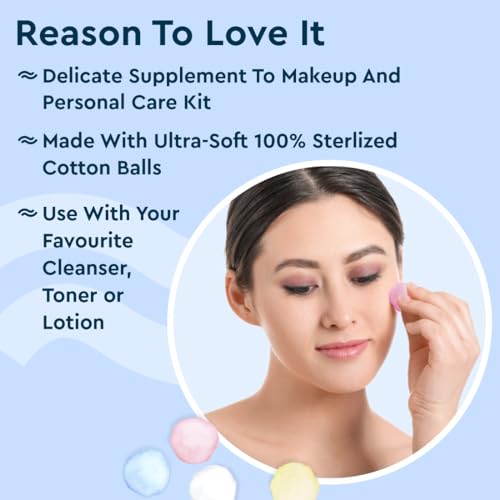 50 pieces of multicolored cotton balls' in each pack Made with sterilized cotton' Ideal for all skin types Extremely soft and gentle to skin. Uses To apply or remove makeup remove nail polish clean cuts or scrapes Being multi layered these cotton balls for face' work perfectly by soaking the unwanted oil from your skin. While threading Baby skin care