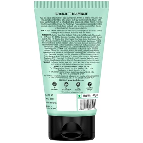 It is a gentle and effective men's facial scrub that removes impurities and fights acne. The natural ingredients such as Neem cleanse nourish and moisturize the skin to make it soft fresh and radiant. It also helps to clear blackheads.