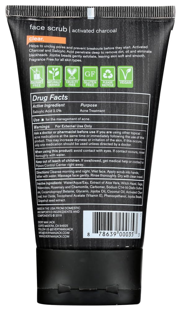 Every Man Jack Skin Clearing Face Scrub Fragrance Free 4.2 Fluid Ounce