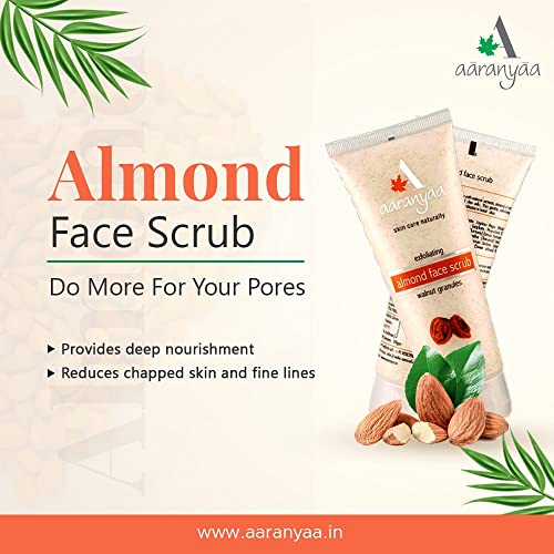 Almonds are rich in vitamin A and have great moisturizing & hydrating properties. The Aaranyaa Exfoliating Almond Face Scrub gives your skin a natural healthy look. Instantly notice the suppleness in your skin with the specially formulated scrub. Enriched with Almond oil Walnut granules and traditional indian herbs this scrub removes dirt and dead skin cells.The Almond Face Scrub provides hydration and nourishment to the skin through gentle exfoliation.