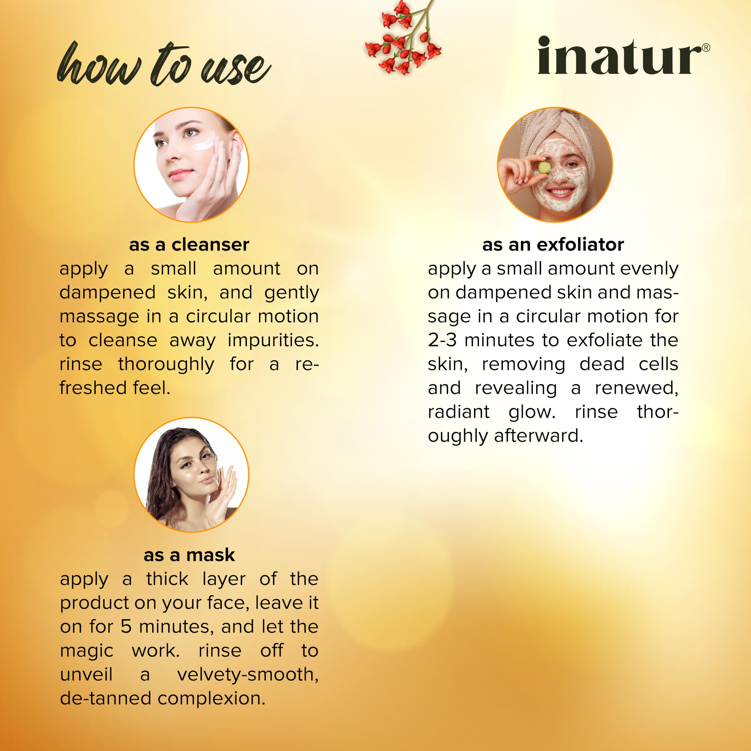 HomeBeautyFace CareCleansersScrubs & Exfoliatorsinatur De-Tan 3-in-1 Tan Removal Face Scrub| also used as Face Cleanser & Mask| Brightening & Dead Cell Removal| Enriched with Real Fruits Extracts| All Skin Type| 200g
