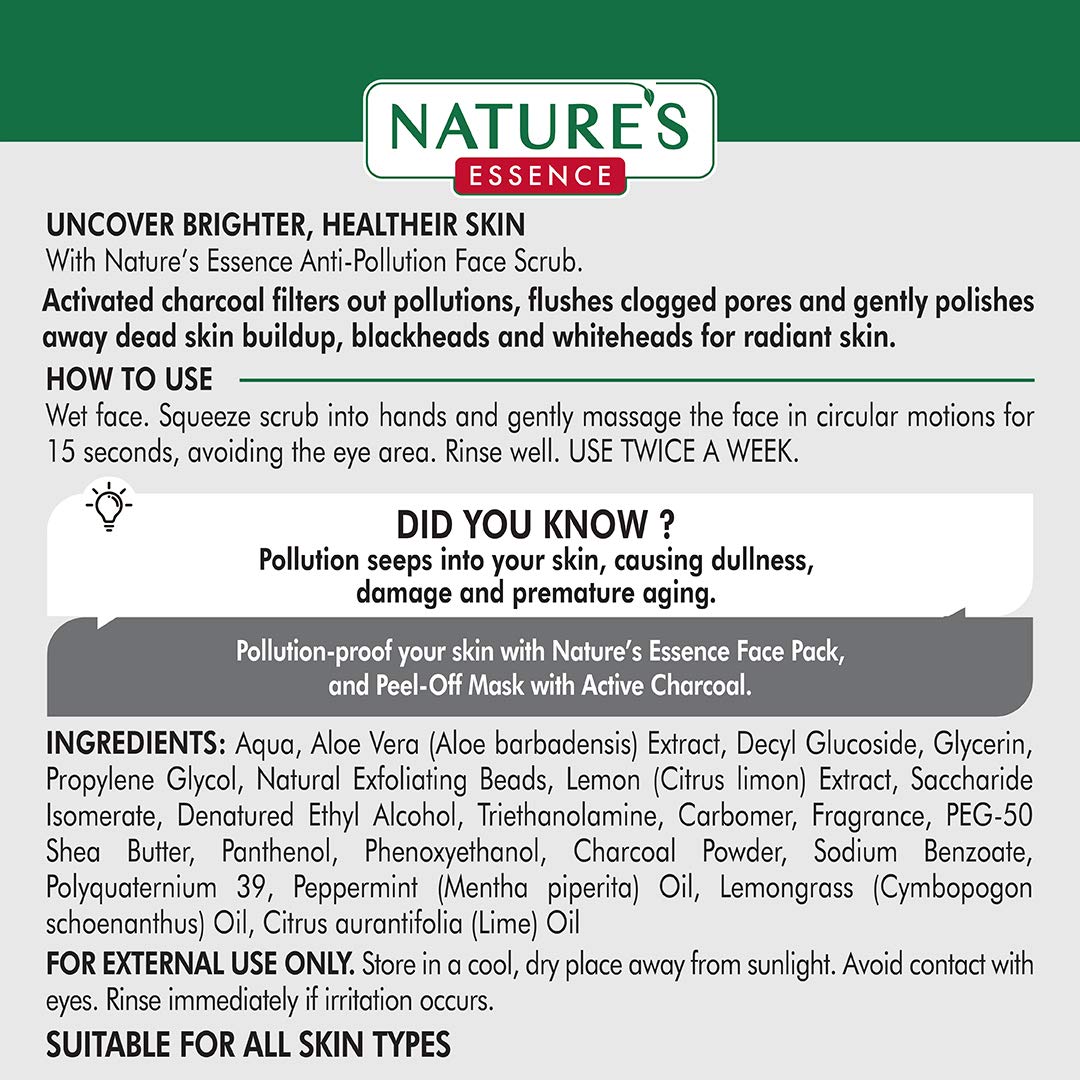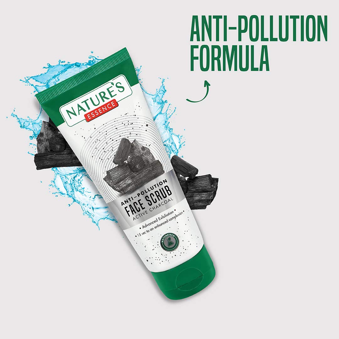 Uncover brighter healthier skin with Nature's Essence anti-pollution face scrub. Activated charcoal filters out pollutants flushes clogged pores and gently polishes away dead skin buildup blackheads and whiteheads for radiant skin.