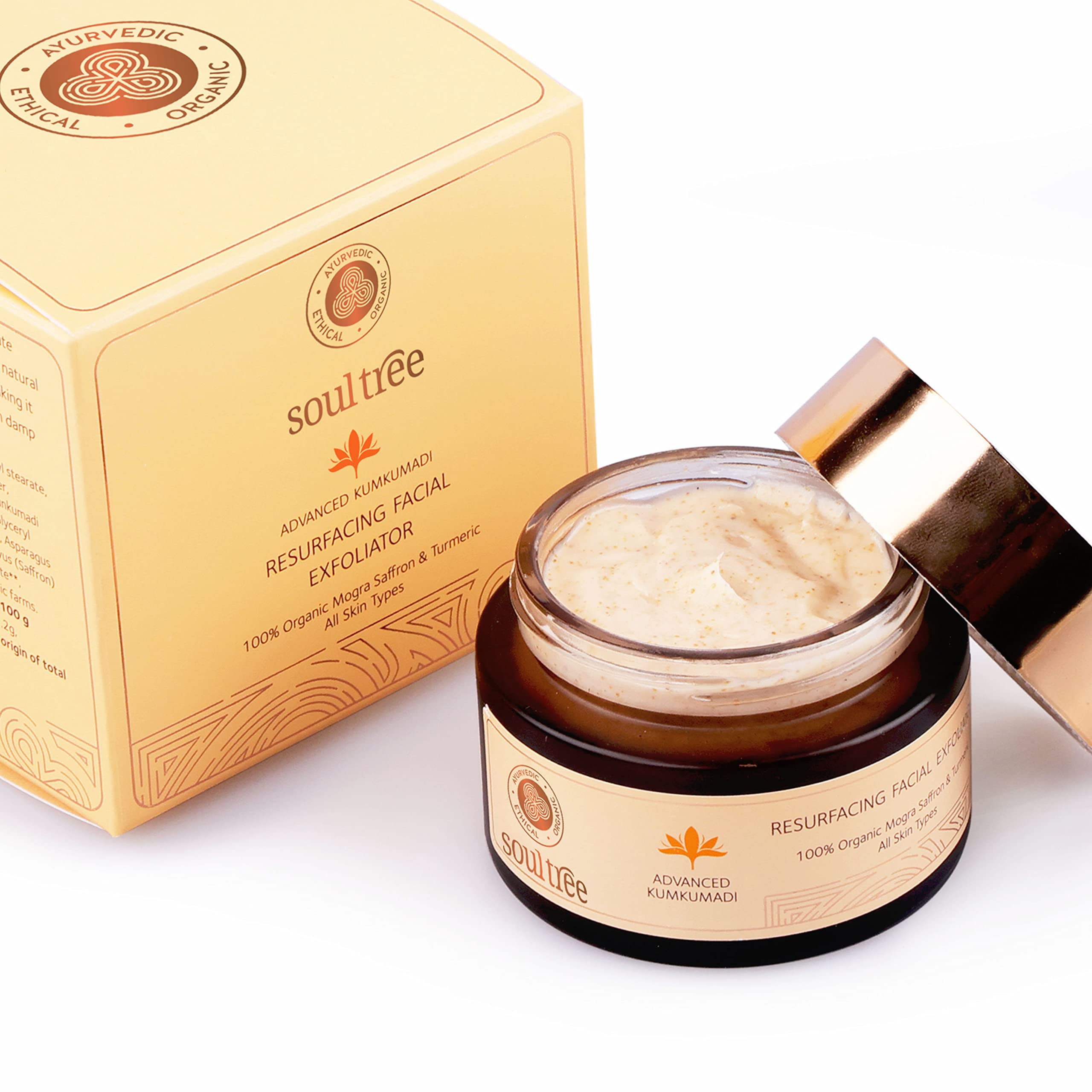 Our Advanced Kumkumadi Resurfacing Facial Exfoliator is a gift of two kinds of formulations Shastriya and Anubhavi which is a luxurious experience and not just a product. Varnya herbs are complexion-enhancing herbs that are an essential ingredient of this Kumkumadi Resurfacing Facial Exfoliator. It is an ultimate skin-detoxifying formula for clear radiant and youthful skin. This turmeric Saffron and Walnut powder enriched exfoliator is a natural paste that gently removes dead skin cells and evens skin texture making it supple and soft. Ayurvedic ingredient Shatavari reduces free radical skin damage that leads to wrinkles.