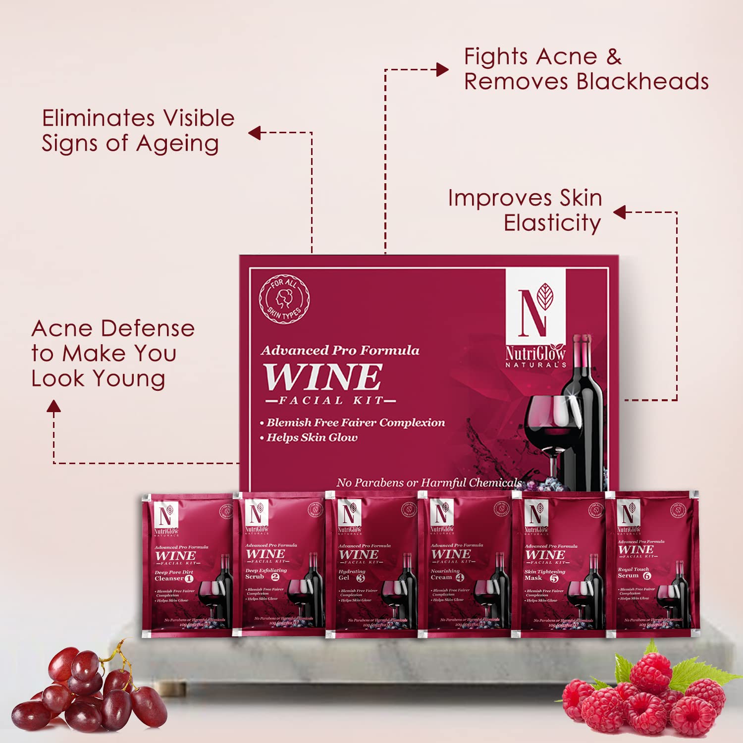 NutriGlow NATURAL'S Advanced Pro Formula Diamond RadianceGold KesarWine Facial Kit For Skin Tone Correction Reduce Blemishes & Hyper Melanin Reduction 10gmx6 Each Pack of 4