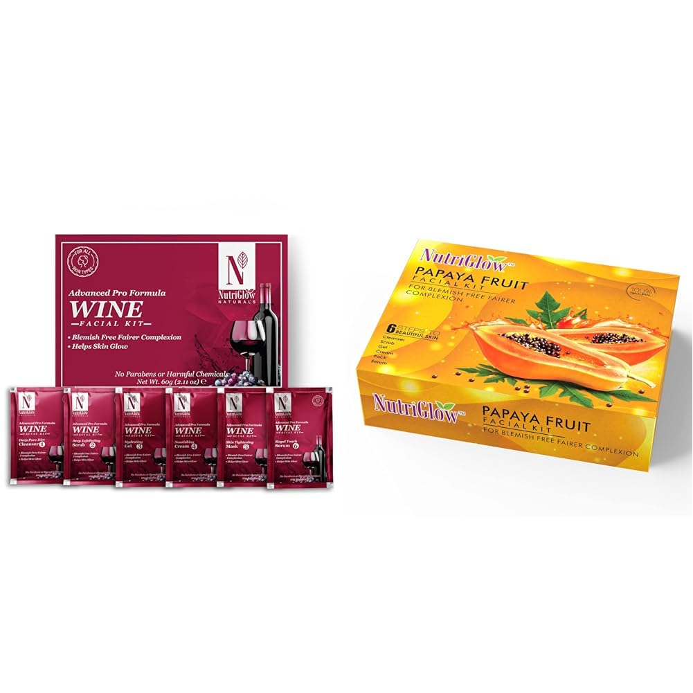 HomeBeautyFace CareFacial KitsNutriGlowNATURAL'S Advanced Pro Formula Wine Facial Cleanup Kit 60 GMPapaya Fruit Facial Kit for Men Women for Glowing Skin (250 gm + 10 ml)