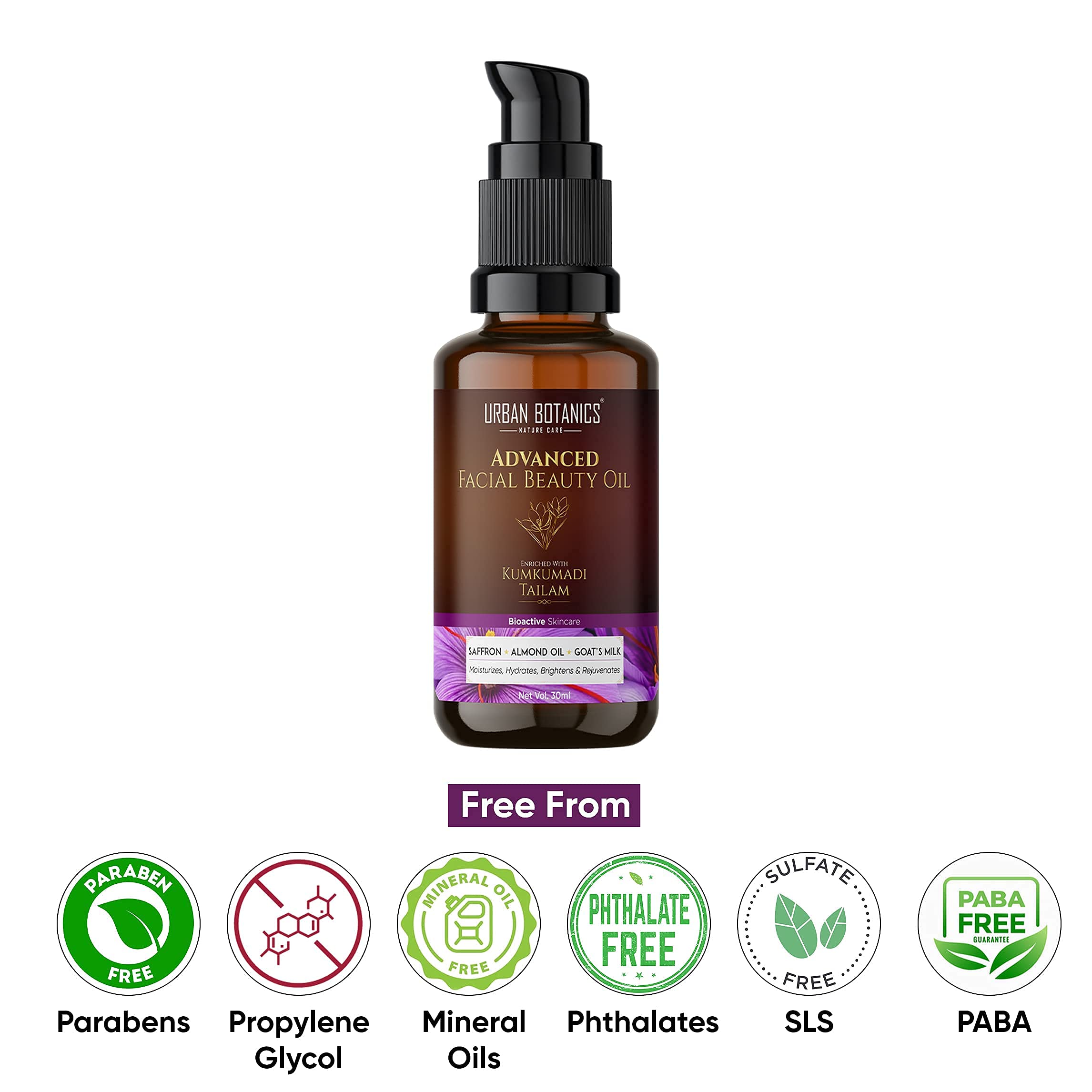UrbanBotanics Kumkumadi Tailam for Skin | Kumkumadi Oil for Face Wrinkles Fine Lines Pigmentation - Men & Women 30ml