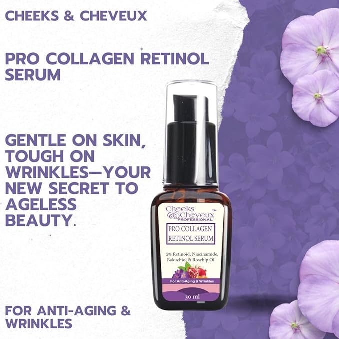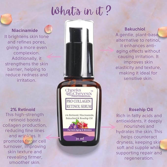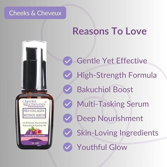 Cheeks & Cheveux Anti-Aging & Wrinkles Serum with 2% Retinoid, Niacinamide, Bakuchiol & Rosehip Oil | Fine Lines & Wrinkles Reduction Serum for Beginners | Water-Free Formula for Stability & Nourishment | Dark Spots Correcting Glow | Suitable for All Skin Types | For Women & Men | 30ml