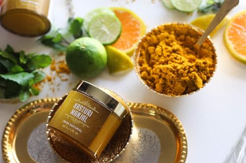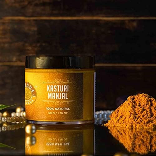 A Traditional wild turmeric powder for a healthy and glowing complexion. Kasturi Manjal has a unique and natural uplifting aroma. It has anti-bacterial and anti-inflammation properties which are proven to fight against acne causing bacteria. The antioxidant properties of wild turmeric help in preserving your skin against the harmful UV rays of the sun and helps rejuvenate your skin. Removes dead skin cells and deep cleanses your skin pores and provides a natural radiance and glow to the skin. You can observe increased skin luminosity with regular use and gives natural glow to your face and skin. To get rid of acne scars and blemishes quickly Mix our wild turmeric powder with few drops of Shesha Naturals Virgin Coconut Oil and apply as a spot treatment and wash off once dried. Store in a Cool and Dry place. For External use only. CAUTION : Natural Ingredients can be allergic to some people. Test patch on inner elbow and leave for thirty minutes. Discontinue if irritation occurs. Please Note : For better results kindly avoid any chemical soaps and we recommend to use Shesha Naturals Tejaswini Soap Free Face Wash Powder.Kasturi Manjal Powder And Red Sandalwood Cream For Men And Women.