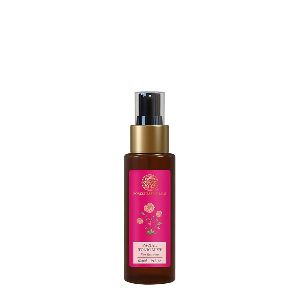Forest Essentials Facial Tonic Mist Pure Rosewater 50gm,130ml,200ml: Ingredient: Pure Rose Water BENEFITS Pure fog distilled Rosewater that is naturally moisturizing and cooling for the face. This hydrating and fragrant Rosewater helps tone the skin while minimizing enlarged pores. Free from chemicals, parabens, and petrochemicals. Eco-friendly packaging. Disclaimer: The product is guaranteed to be 100% genuine. Product images are for illustrative purposes only. Images/packaging/ labels may vary from time to time due to changes made by the manufacturer's manufacturing batch and location. The produ