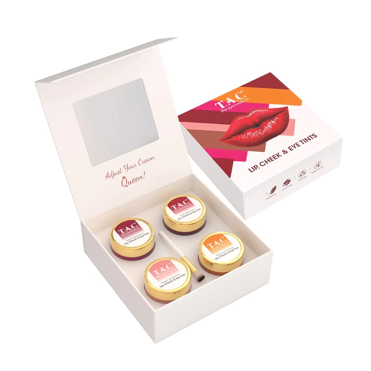 Get all your favourite peaches & plums together with this assorted pack of 4 lip & cheek tints box. With easy to apply mini brush & unbreakable mirrorbe ready for an oh-so-natural glam and glow. This fusion box includes the following shades- 1.Beet Mighty Pink 2.Satsuma Orange 3. Retro Red Plum 4.Peach Nude Pink These Lip & Cheek Tints are- 100% Vegan Blends Easily & Long Stay Moisturising and Super Light Suitable for all skin types
