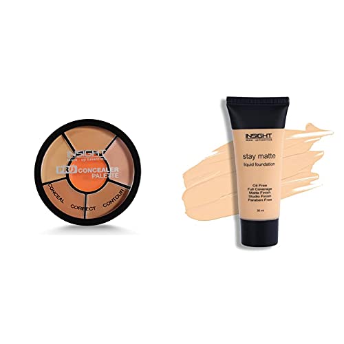 Insight Cosmetics Pro Concealer Palette (Concealer)Insight Cosmetics Pro Concealer Palette features a wheel of 6 shades that can be used to camouflage imperfections conceal dark circles and contour. Its soft creamy texture blends effortlessly to gives you a smooth flawless finish. Apart from that it also helps cover discoloration redness and instantly brightens up the skin.INSIGHT Foundation - 30 ml (Nude Beige)A unique 2-in-1 formula that enhances and brightens your complexion. Insight concealer foundation face cream gives you an ideal flawless makeup base. This richly pigmented Cream Concealer and Foundation formula unifies and smooths out the skin tone beautifully. Available in variety of shades to match amost of the Indian skin tones this long-lasting concealer foundation cream evens out skin tone hides blemishes spots reduces pore size and also moisturizes skin. With a creamy smooth formula that blends naturally in to skin with amazing coverage you can also spot conceal using this product and use it under eye areas to cover dark circles or cover blemishes spots etc.