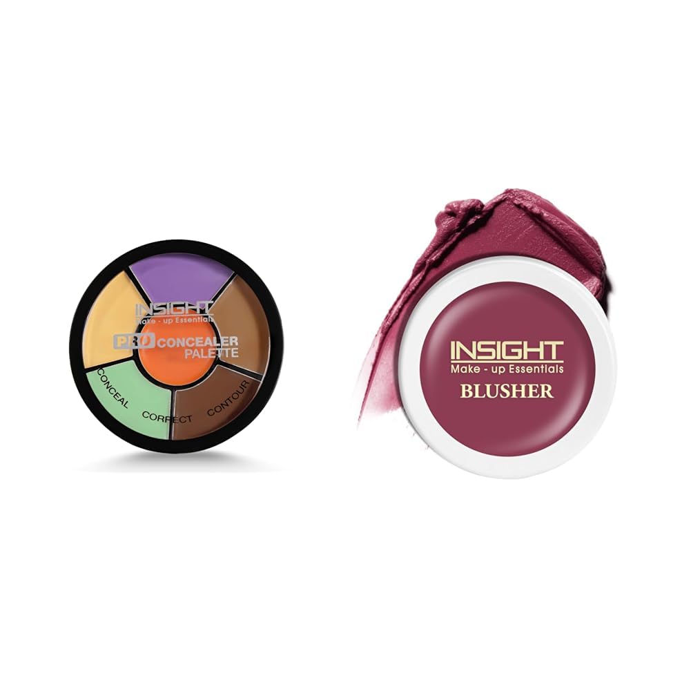 Insight Cosmetics Pro Concealer Palette-Corrector|Conceal |Correct |Contour |WaterProof |Crease Resistance |Long Lasting |Oil Control (CR105-Corrector)INSIGHT cosmetics pro concealer palette features a wheel of 6 shades that can be used to camouflage imperfections conceal dark circles and contour. Its soft creamy texture blends effortlessly to give you a smooth flawless finish. Apart from that it also helps cover discoloration redness and instantly brightens up the skin.Insight Cosmetics Crème Blusher Face Makeup Dusty Rose 3.5 gm(B-02=03)Insight Cosmetics Blusher is as light as fair A Richly Pigmented Crème blush is builable an Blendable Colour Right at your fingertips & perfect for those days when one want to look fresh without the fuss. Our crème blush blush is your Go-To For an instant Dewy flush for cheecks. The Lightweight formula melts onto skin seamlessly. It is formulated with antioxidants like Vitamin E which nourish & Moisturize the cheeks.