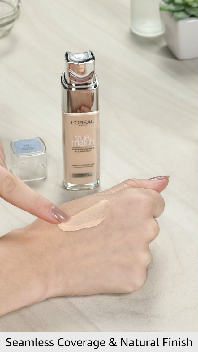LOral Paris True Match Super-Blendable Foundation is an innovation in bringing shade-matching technology to foundation makeup. This liquid foundation ideally matches the colour of every Indian skin tone. The micro fine pearl particles give a natural flawless finish with instant correction on the skin. The formula is super-hydrating and provides coverage with a natural finish that so blendable it like you cant tell where your foundation ends and your skin begins. True Match goes beyond matching skin tone to matching skin undertone; light to dark and warm neutral and cool undertones for a true-to-skin result. Enriched with Glycerine Vitamin B and E True Match foundation nourishes the skin while SPF 17 helps protect the skin from the harmful sun rays. LOral Paris India offers the complete range of makeup. Discover our best foundations for every skin type. From matte foundation for oily skin to cream foundation for dry skin and everything in between. Match your skin tone and identify the formula that works with your skin whether it's our long-lasting foundation or a BB Cream you can have a flawless looking even finish.