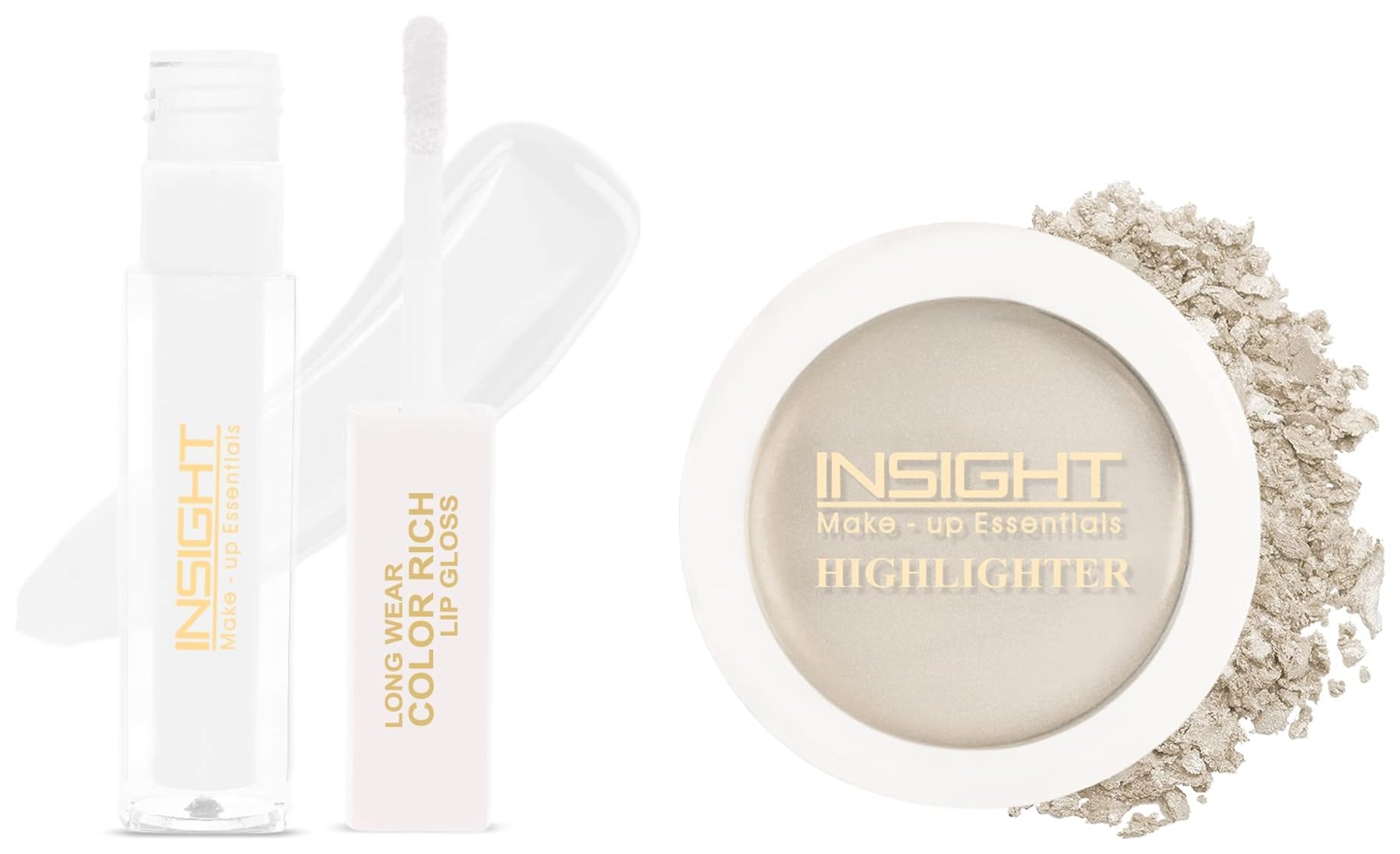 Insight Cosmetics Glitter Makeup Highlighter 3.5 gmThis long-wearing crème powder highlighter formula has unique texture that is buildable and blends flawlessly to leave the cheeks and the high points of the face looking healthy. It brings instant glow all day long due to high intense natural glow. It's buildable blendable and so buttery soft. It is designed to complement all skin tones and all skin types. The smooth texture blends effortlessly and gives the perfect luminous finish to complete your look.INSIGHT Long Wear Color Rich Lip Gloss Glossy Finish - LG41-01It comes with a heart-shaped brush applicator for proper coverage and smooth application to the lips. Dab the applicator in the product container and apply a little on your lips for a gorgeous pout. Silky feeling makes lips soft with constant moisturizing relax you tired lips purify lip colour and shows fresh appearance. Resume full lip compact making your lips more flexible moist and sexy.