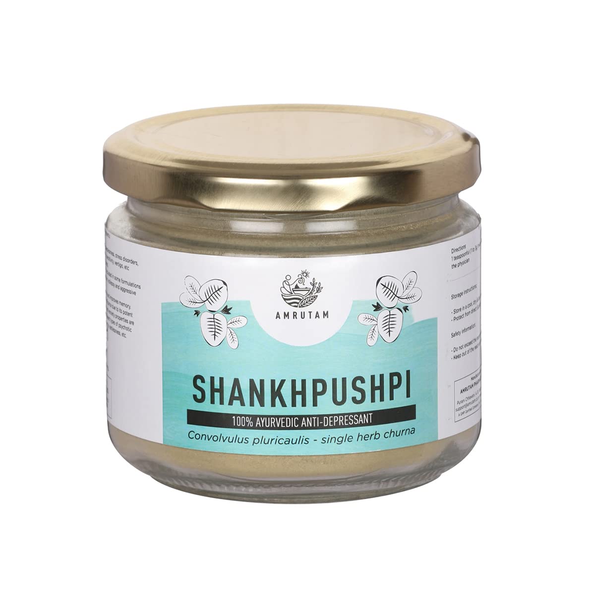 Amrutam Shankhpushpi Churna is a herbal and medicinal recipe for achieving optimal mental health and managing stress depression and anxiety. Shankhpushpi Churna is a traditional Ayurvedic herbal powder made from the Shankhpushpi plant scientifically known as Convolvulus pluricaulis. Revered for its medicinal properties this herbal churna is highly valued in Ayurveda for promoting mental well-being