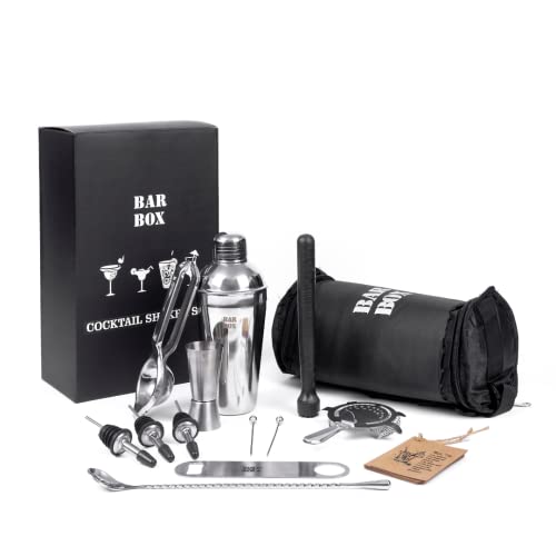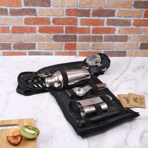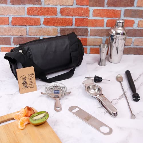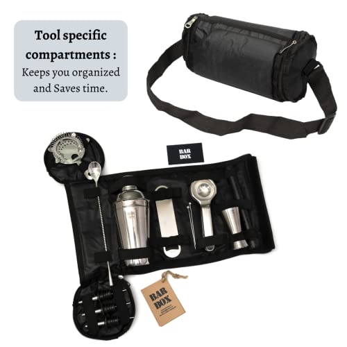 Bar Box Travel Kit Bag 14 Pcs | Easy to Carry Portable Mini bar Liquor Tool Set Portable Bar Bag and Shoulder Strap for Easy Carry and Storage | Best Travel Bar Set for Home Cocktail Making