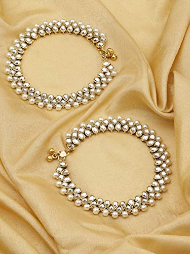 Priyaasi Gold Traditional Kundan And Moti Anklet for Women & Girls