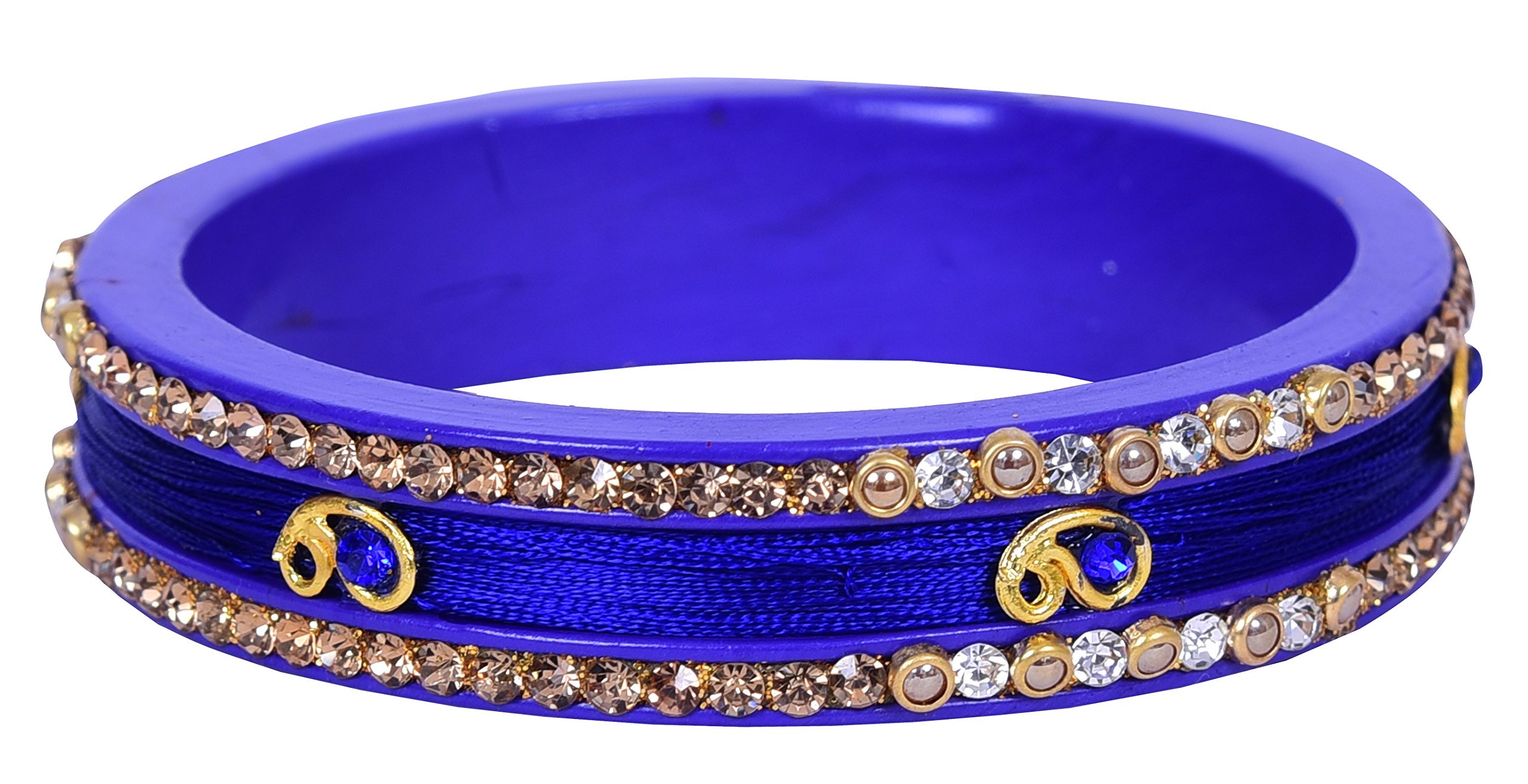 Upgrade your existing jewellery collection with this bangle set from the house of LAC BANGLES. We present you a rajasthani beautiful two piece silk thread Lac Kada bangles on Lac base studded with Gold & White color stones & embellished with pearl which will add a magical sparkle to your dazzling persona. Pair it with ethnic traditional or any party wear & create your own style statement.