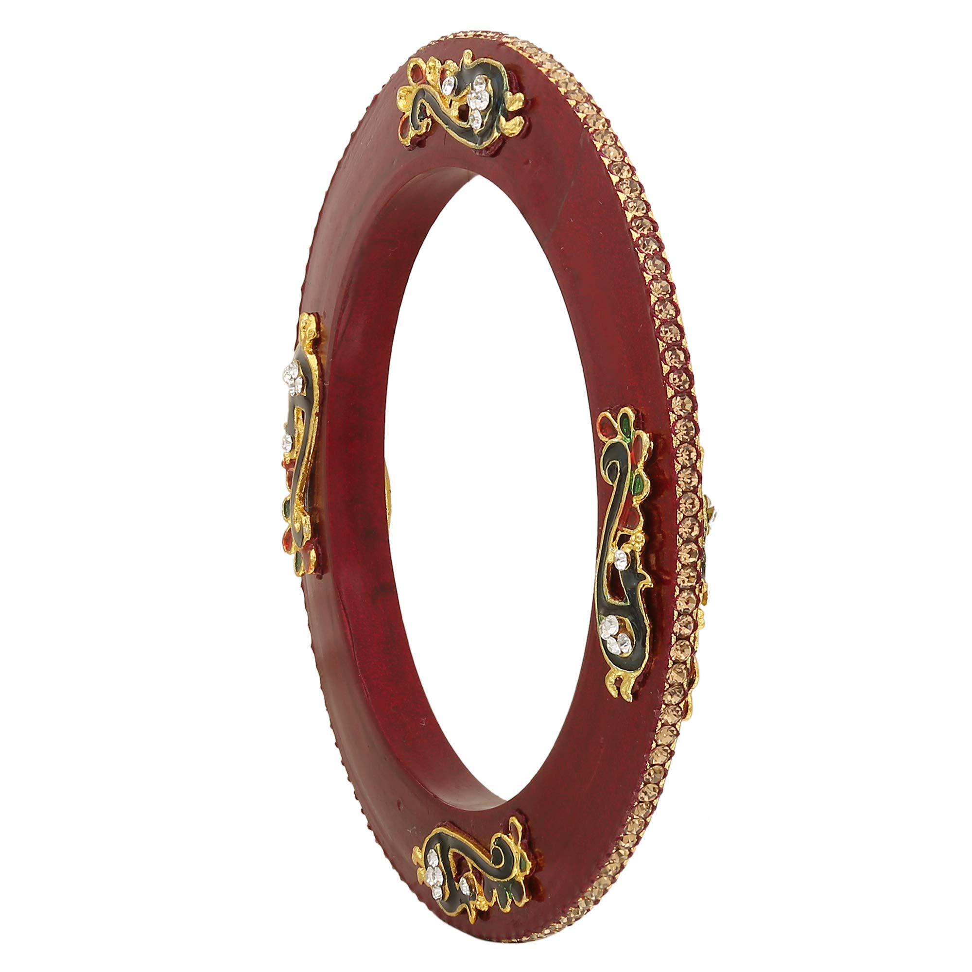 Upgrade your existing jewellery collection with this Bangle Set from the house of LAC BANGLES. We present you a rajasthani 2 piece kada Cream maroon pink gold red bangles studded with color stones and embellished with peacock which will definitely enhance your attire and add a magical sparkle to your dazzling persona.Pair it with ethnic traditional casual or any party wear & create your own style statement.