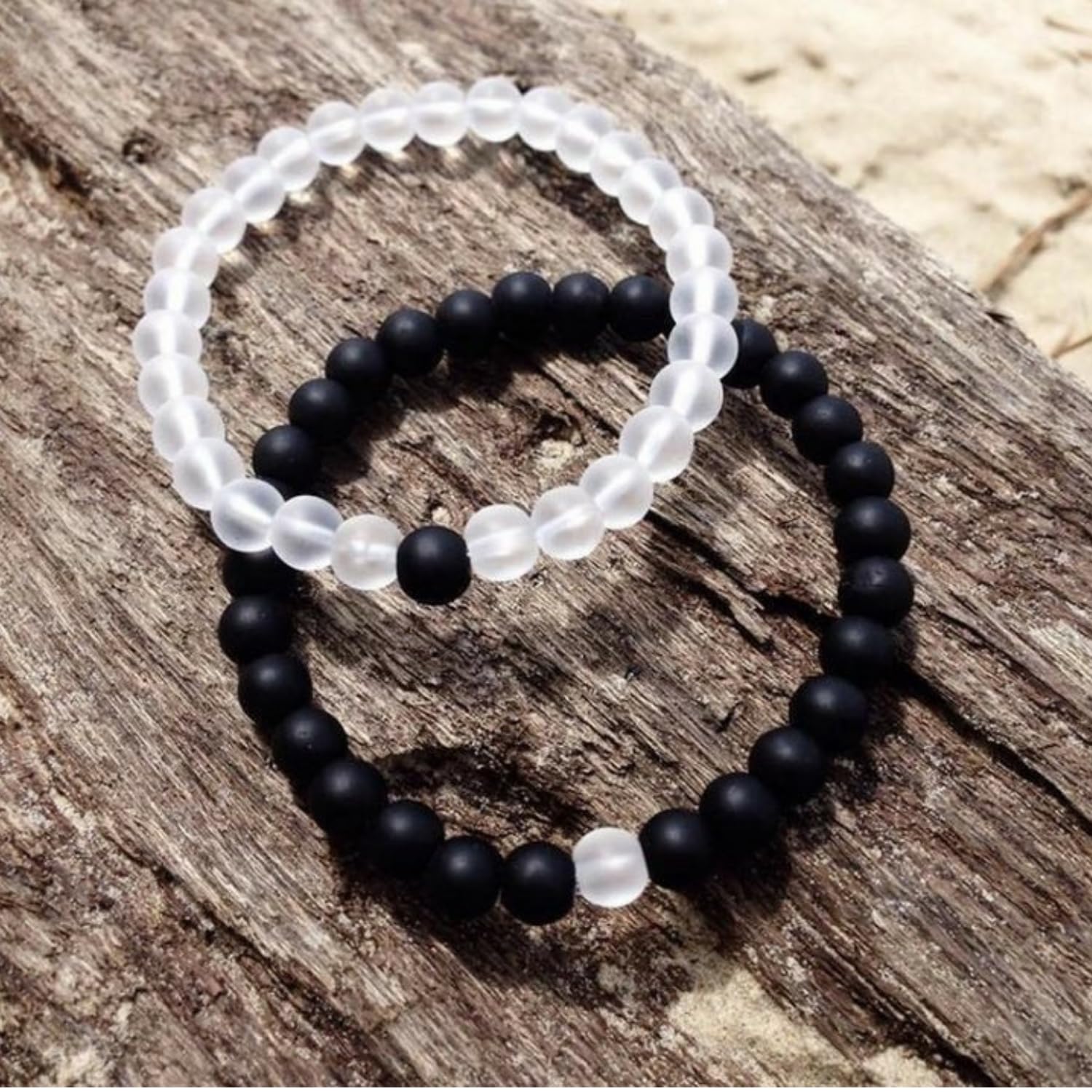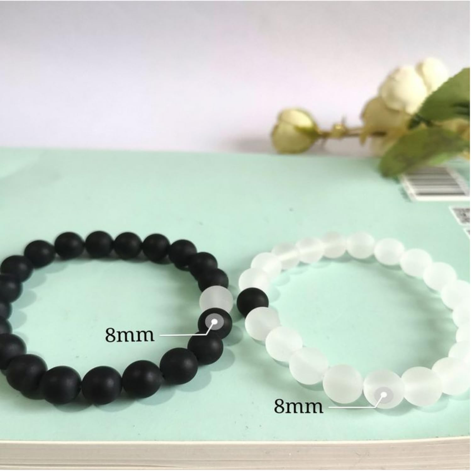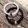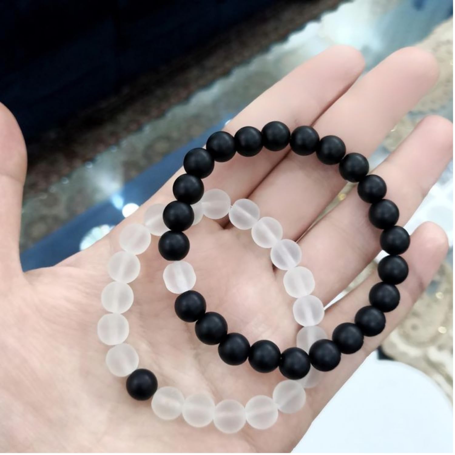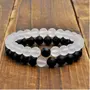 Sukhad Couple-Combo Matching Best Friend Relationship Natural Multi Layer Tiple Protection Stone Beads Magnetic Bracelets. For unisex adult. Black and white beaded bracelets are a classic jewelry style that can be dressed up or down. They can be worn on their own or stacked with other bracelets. They are also a popular choice for couples or friends who want to wear matching jewelry. Here are some other details about the bracelets in the image: The beads appear to be made of agate a type of quartz that comes in a variety of colors. Agate is a popular choice for jewelry because it is durable and has a beautiful luster. The bracelets are a medium width which is flattering on most wrist sizes. The knot closure is a simple and secure way to keep the bracelets on your wrist. If you are interested in purchasing a black and white beaded bracelet there are many options available online and in stores. You can choose from a variety of materials colors and styles to find a bracelet that you love.