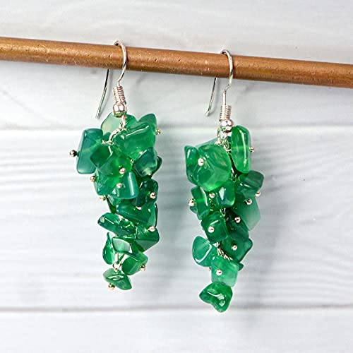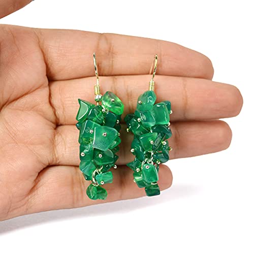 Green Onyx Earrings Natural Chip Beads Earrings for Women, Girls (Green)
