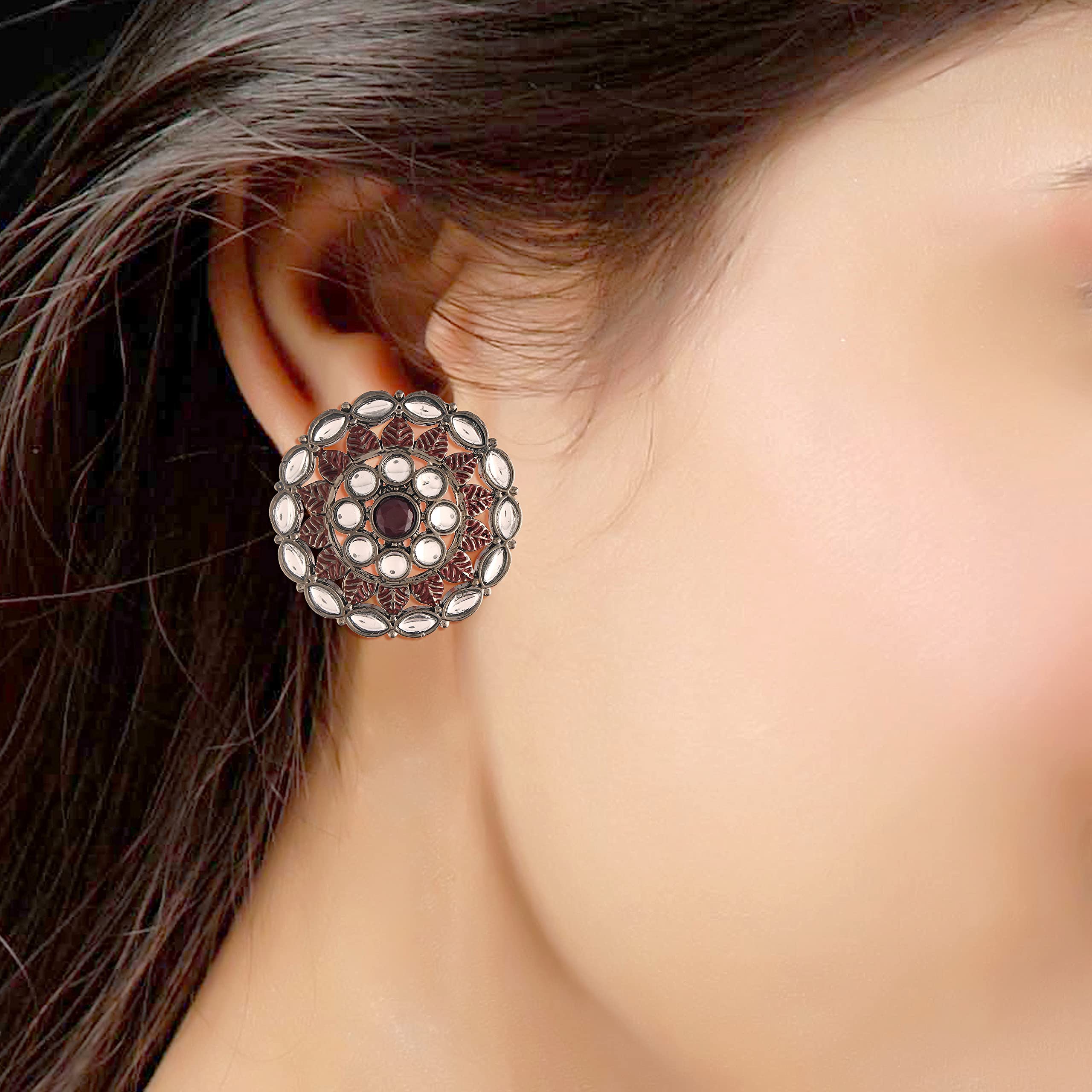 DIMENSIONS: Earring Height - 4 Cm X Width - 4 CmI Jewels Silver Oxidized Stud- This Trendy Western antique simple look ear rings go with everything in your closet from ethnic to casual wear or festival or any other occasion.