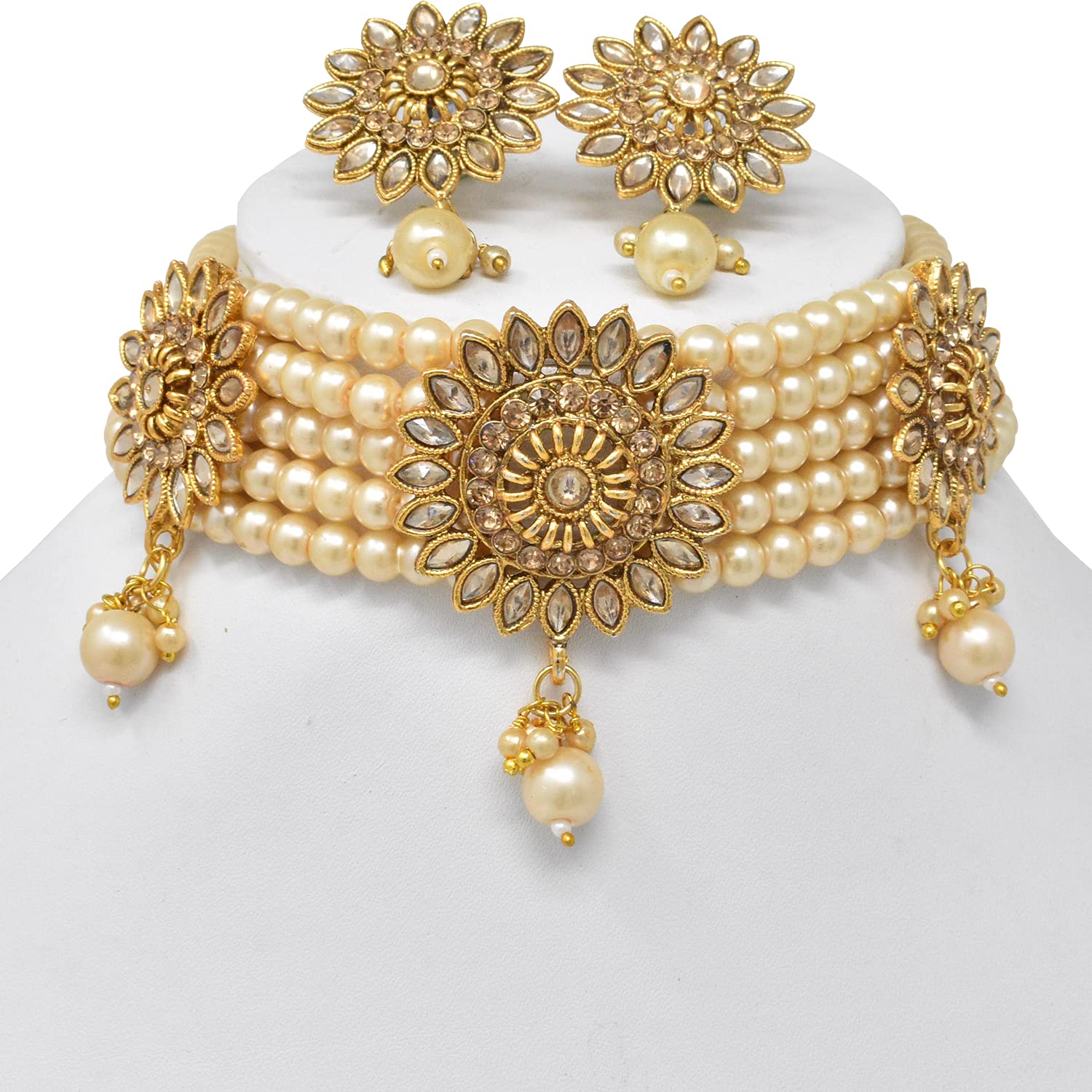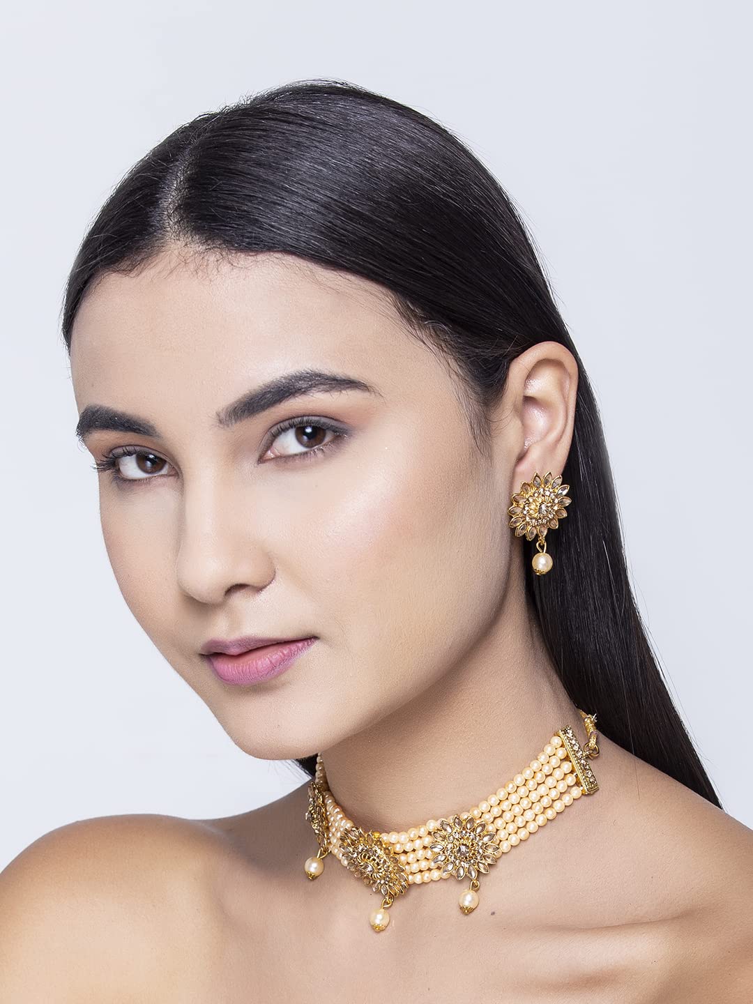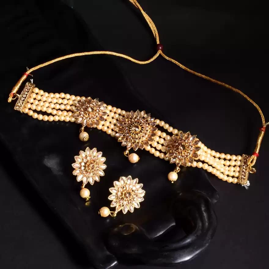 HomeFashionEarringsKUNDAN & MEENAKARI JEWELLERY Traditional Wedding Style Kundan Choker Necklace Set with Jhumki Earrings for Women (choker necklace set)