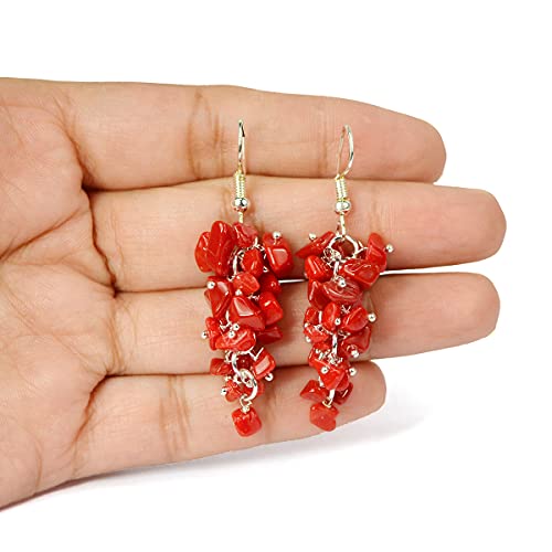Red Stone Earrings Natural Chip Beads Earrings for Women, Girls Red