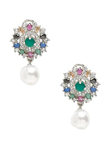 Ruby Raang Women's Mixed Metal Artificial Kundan Earrings - Traditional Jewellery Set for Women (Multicolor)