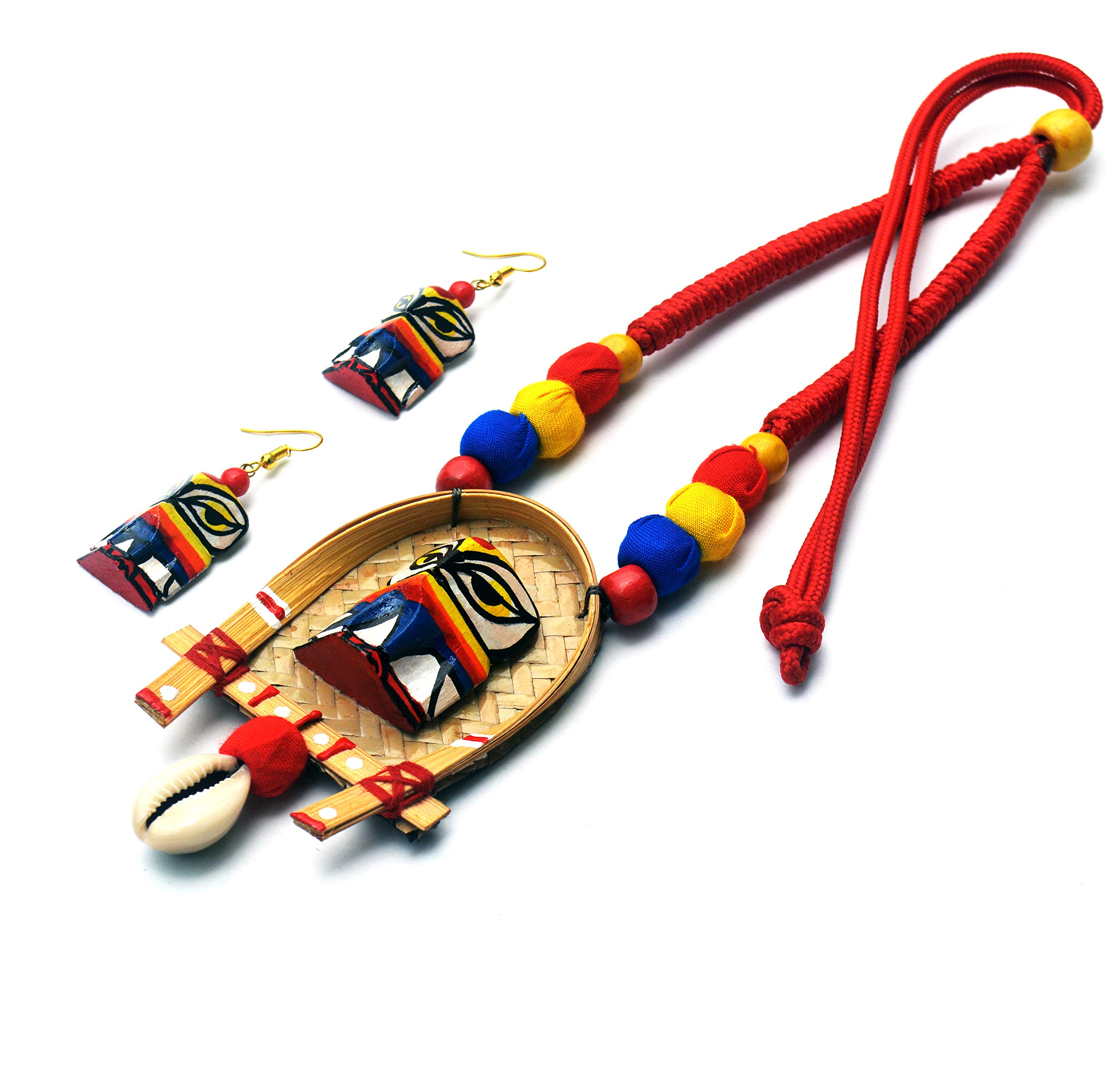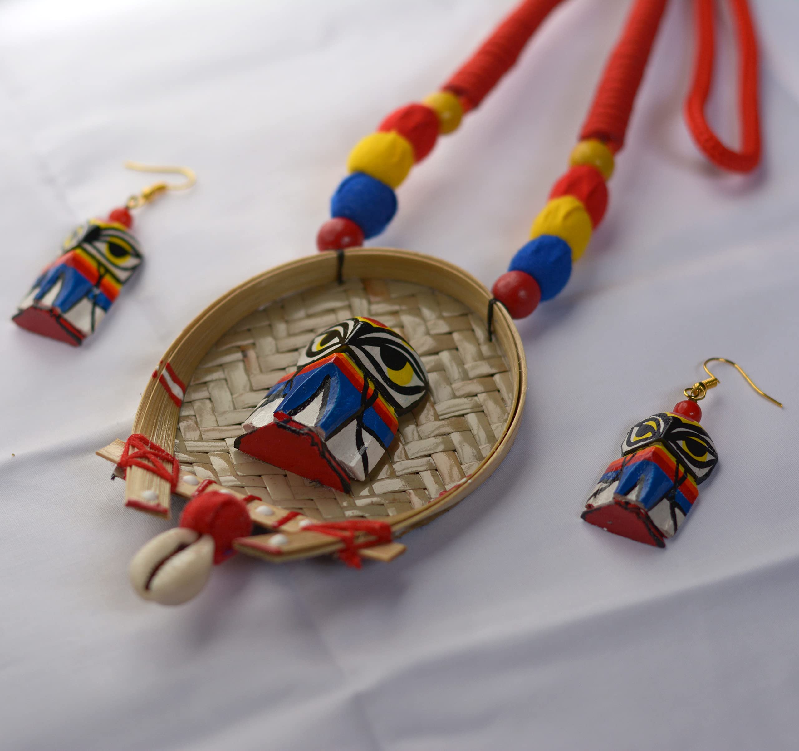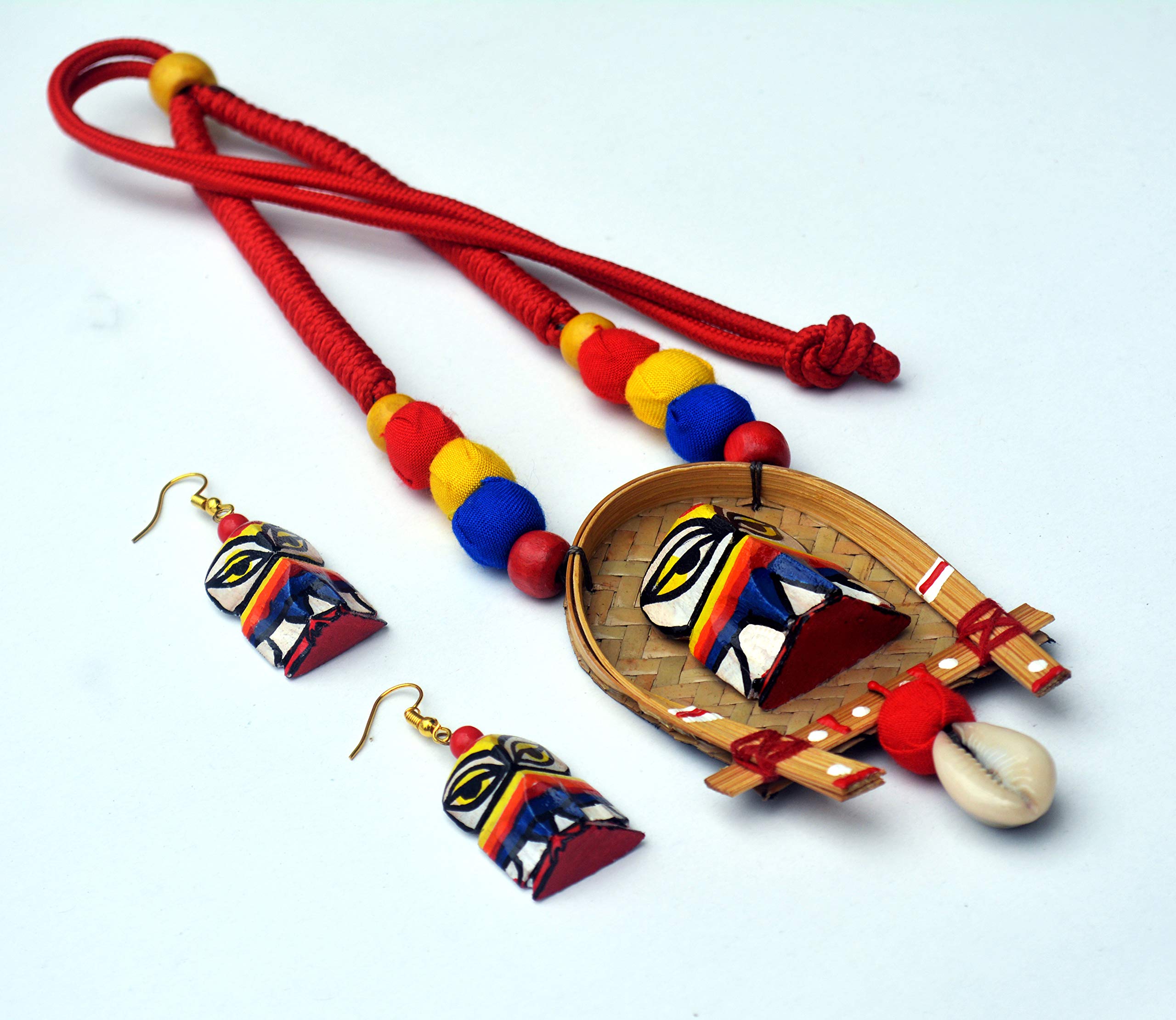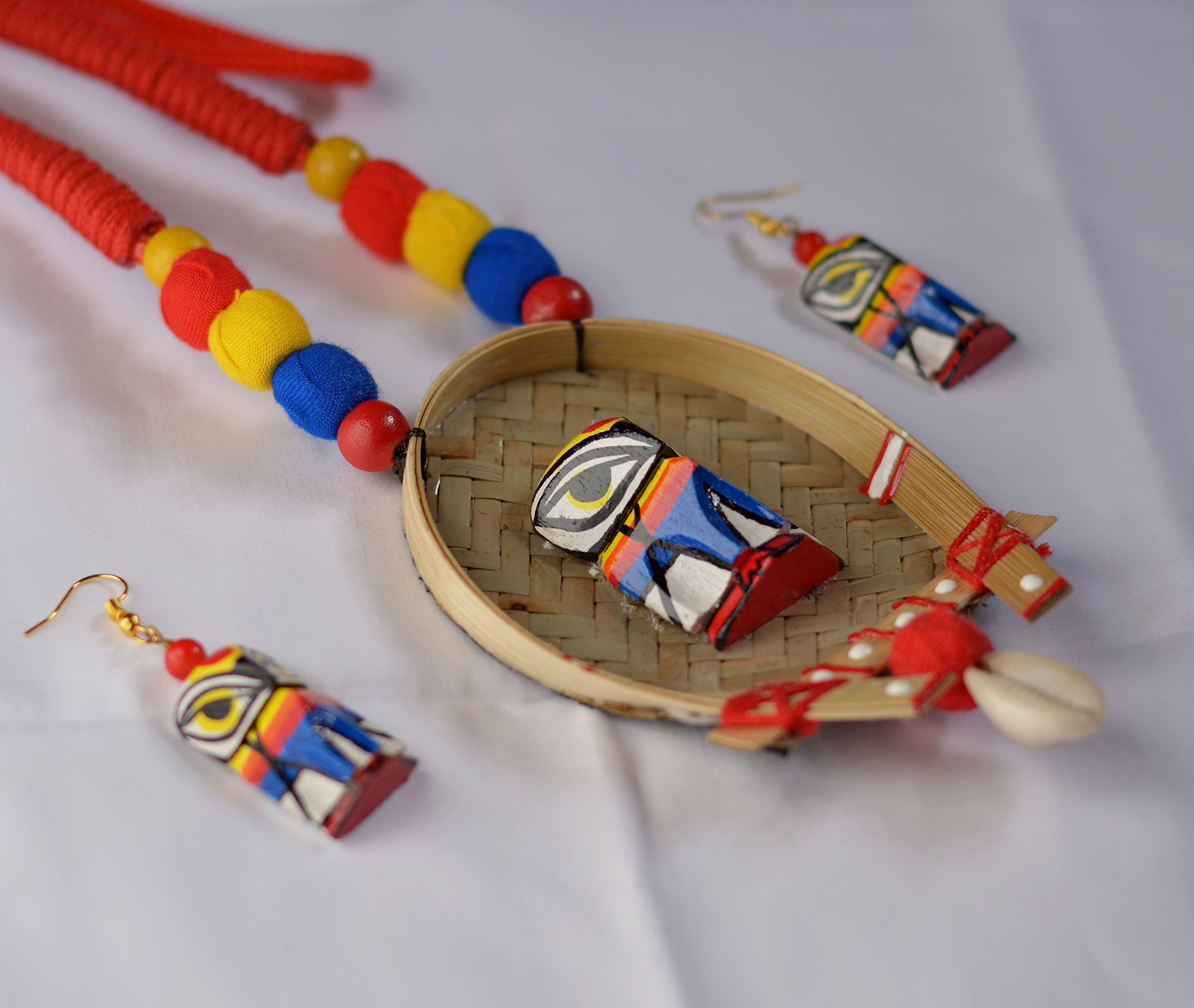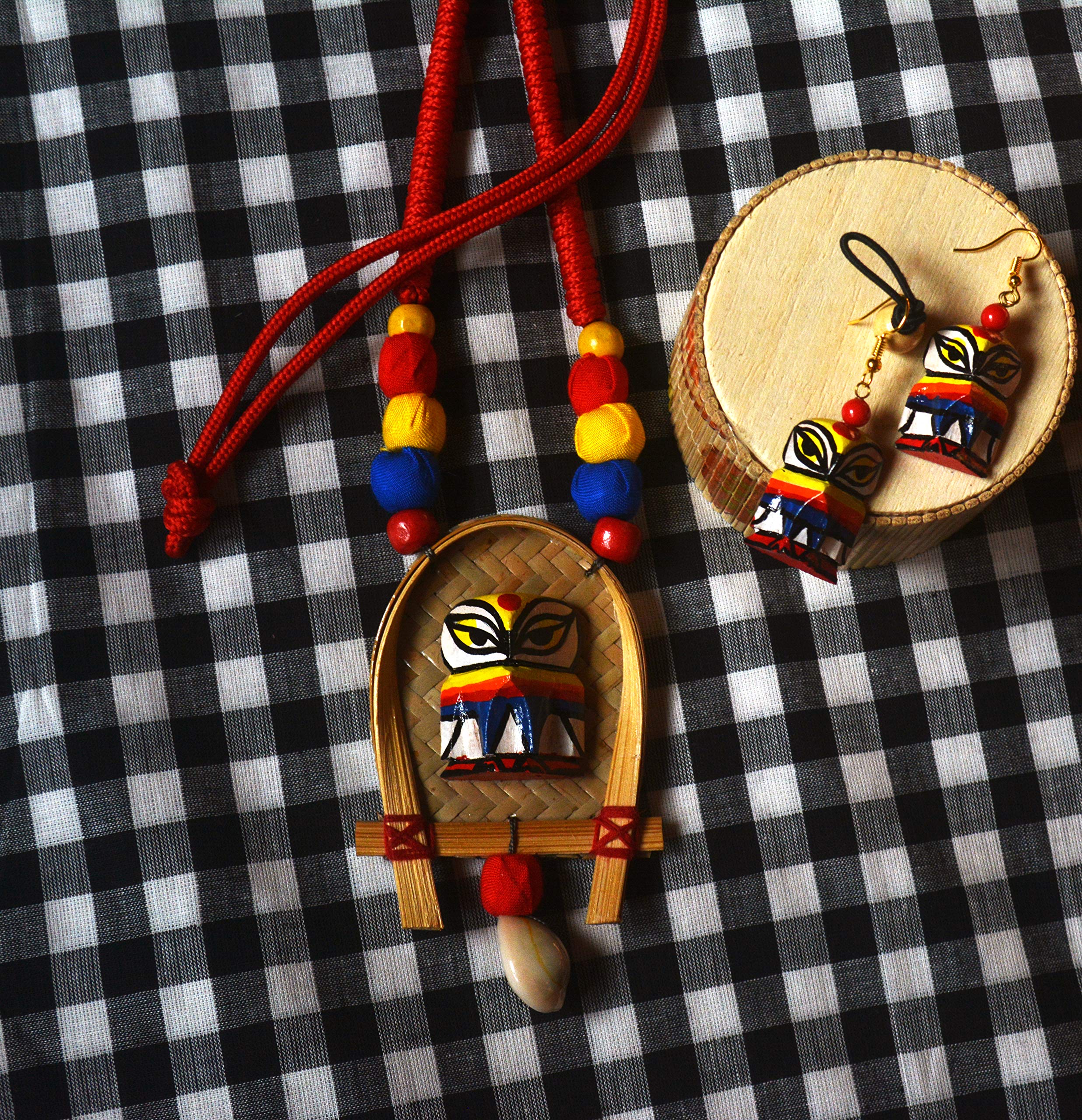 TERRACOTTA JEWELLERY Handicraft Jewellery for women Wooden Owl Bamboo Crafted & Hand painted Jewellery Sets for Women & Girls(Colour-Blue Size- Free)