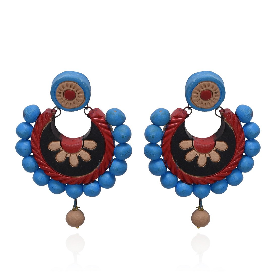 The products in display is made from terracotta material and is finished in an attractive color. Furthermore this product features a Jhumka shape and a design that renders it with the versatility to be worn as a festive occasion wear.