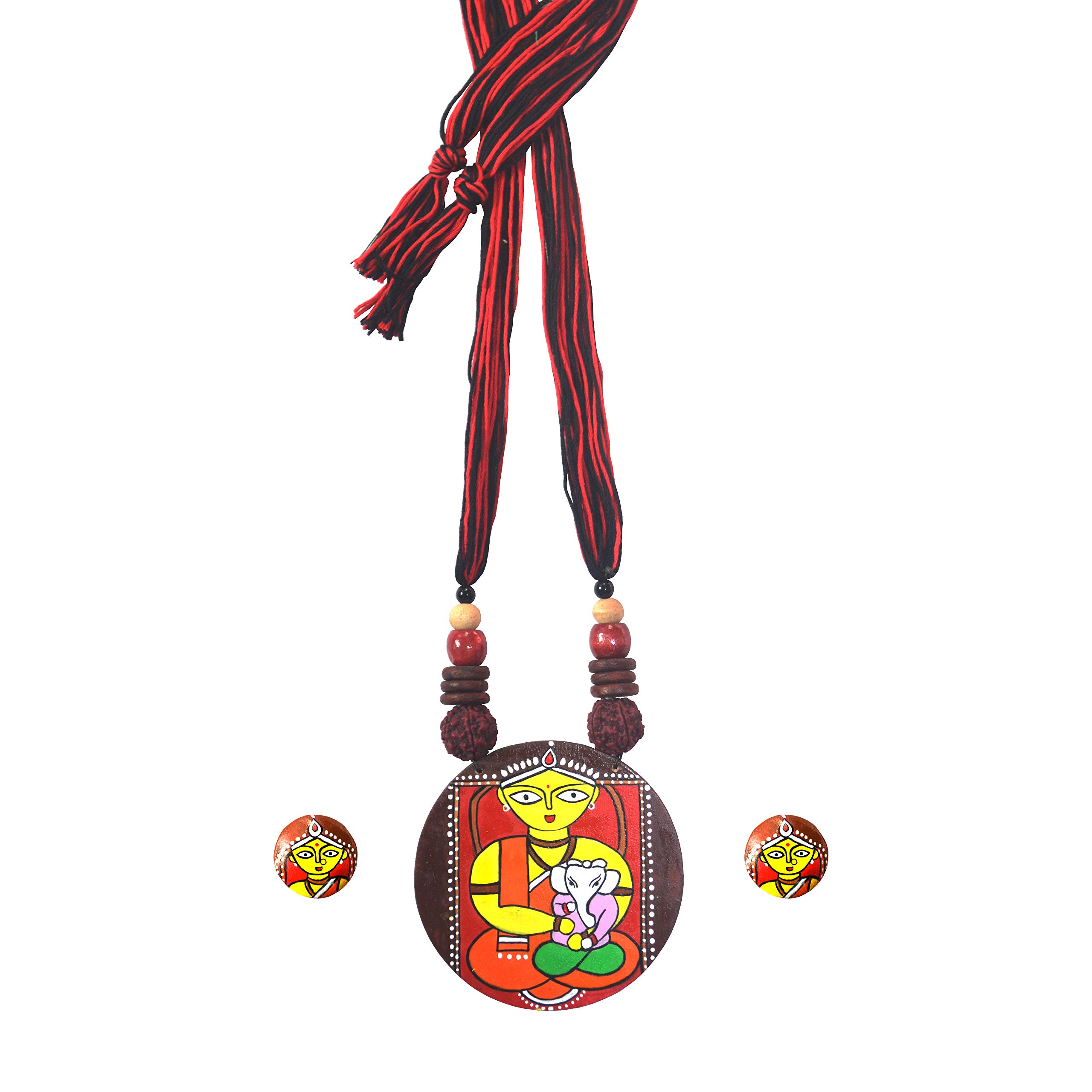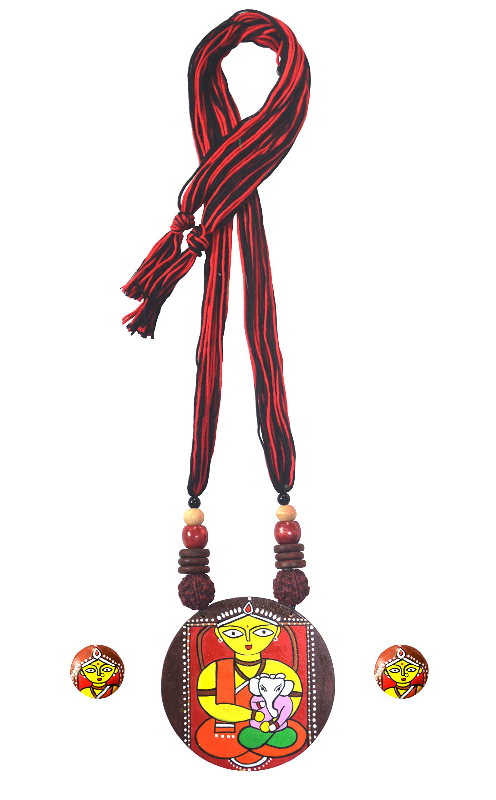 TERRACOTTA JEWELLERY is the Best Necklace maker of Eastern India. We used Heritage Culture of different Side of India in Our Products. We developed our own Creation own design by maintaining traditional Culture without modifying its originality. In this Product We use Little Ganesha in Mothers Lap in Our Pendent and the painting is made by Acrylic Color and we polished it for Glossiness.