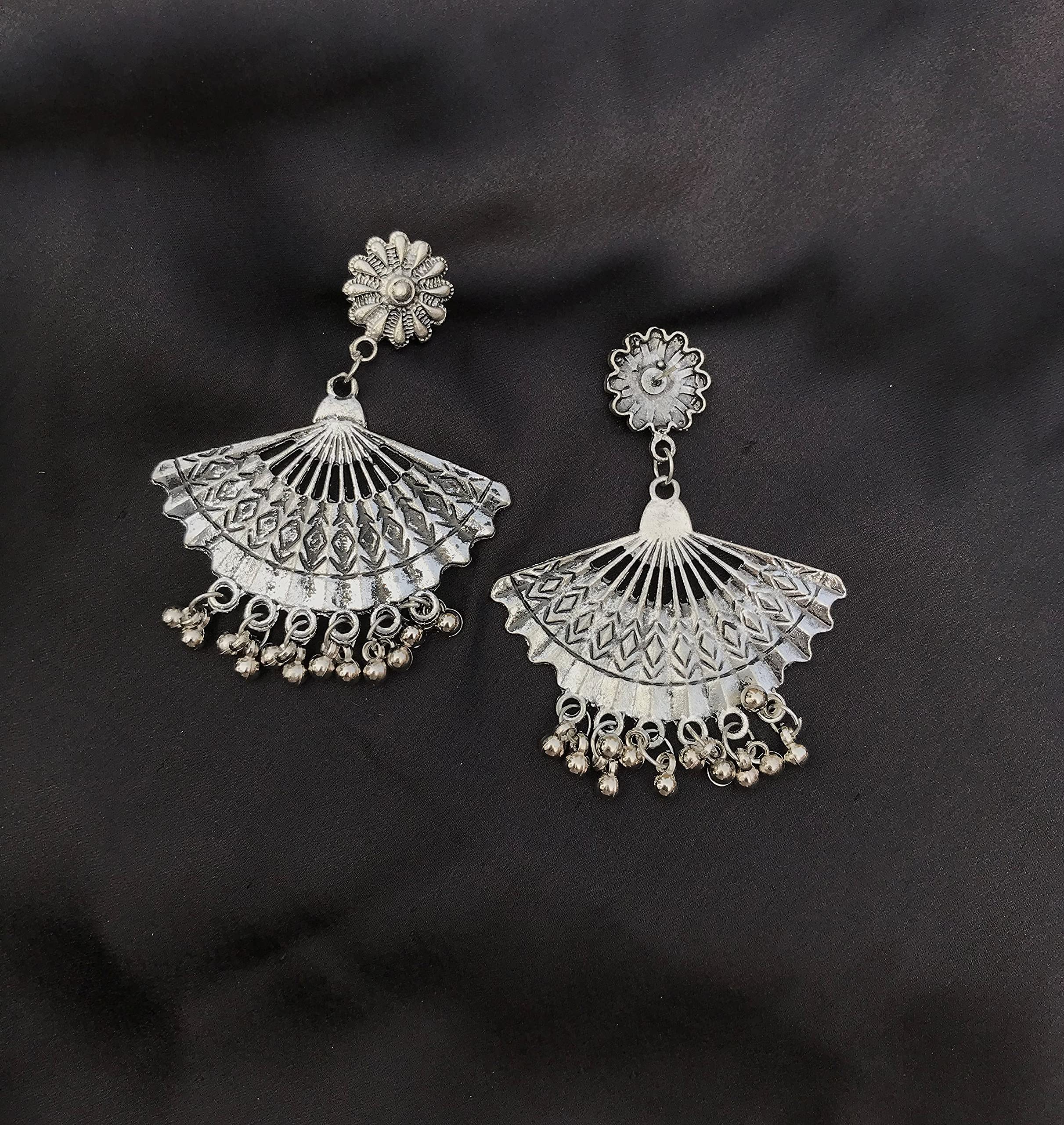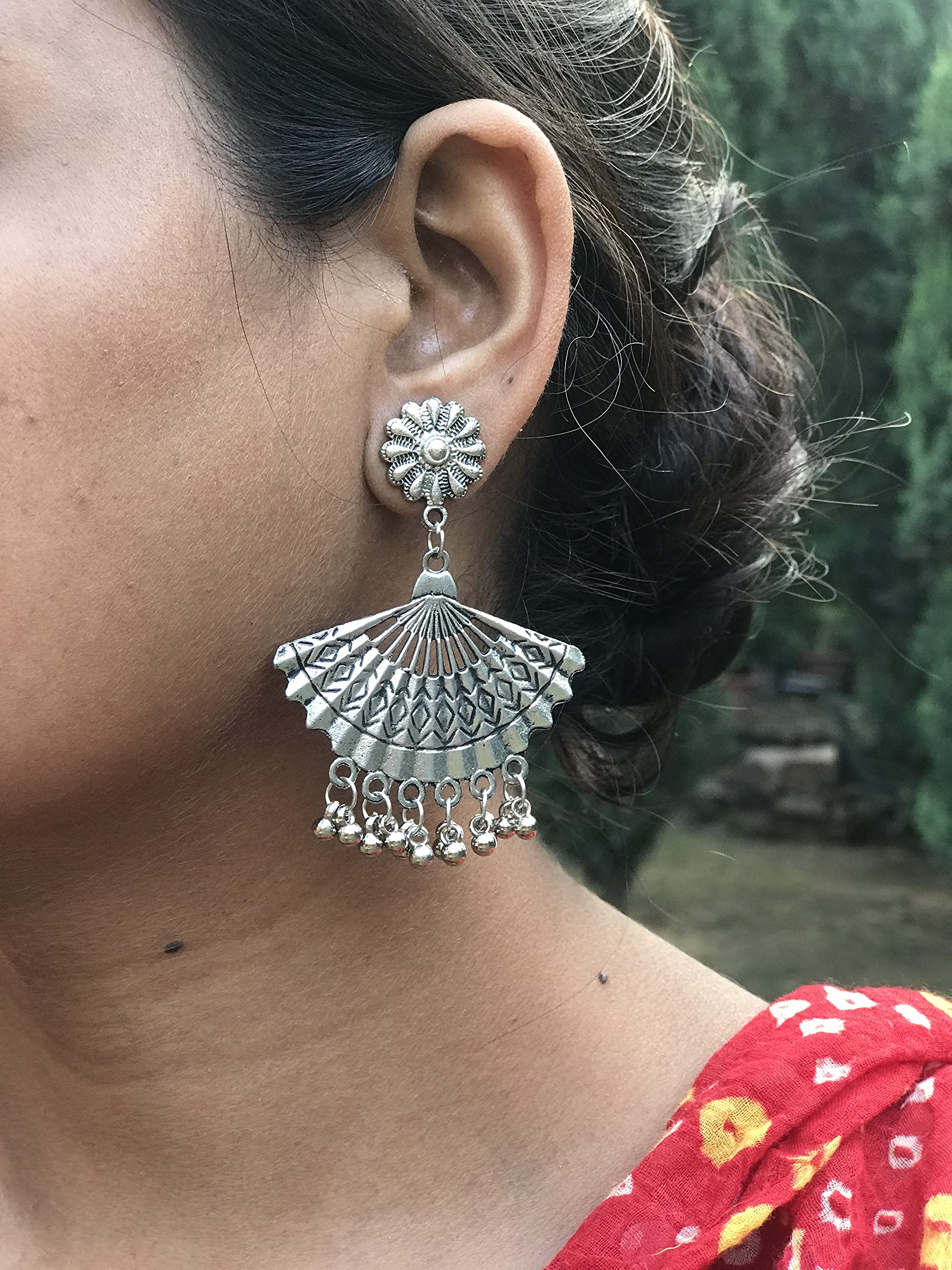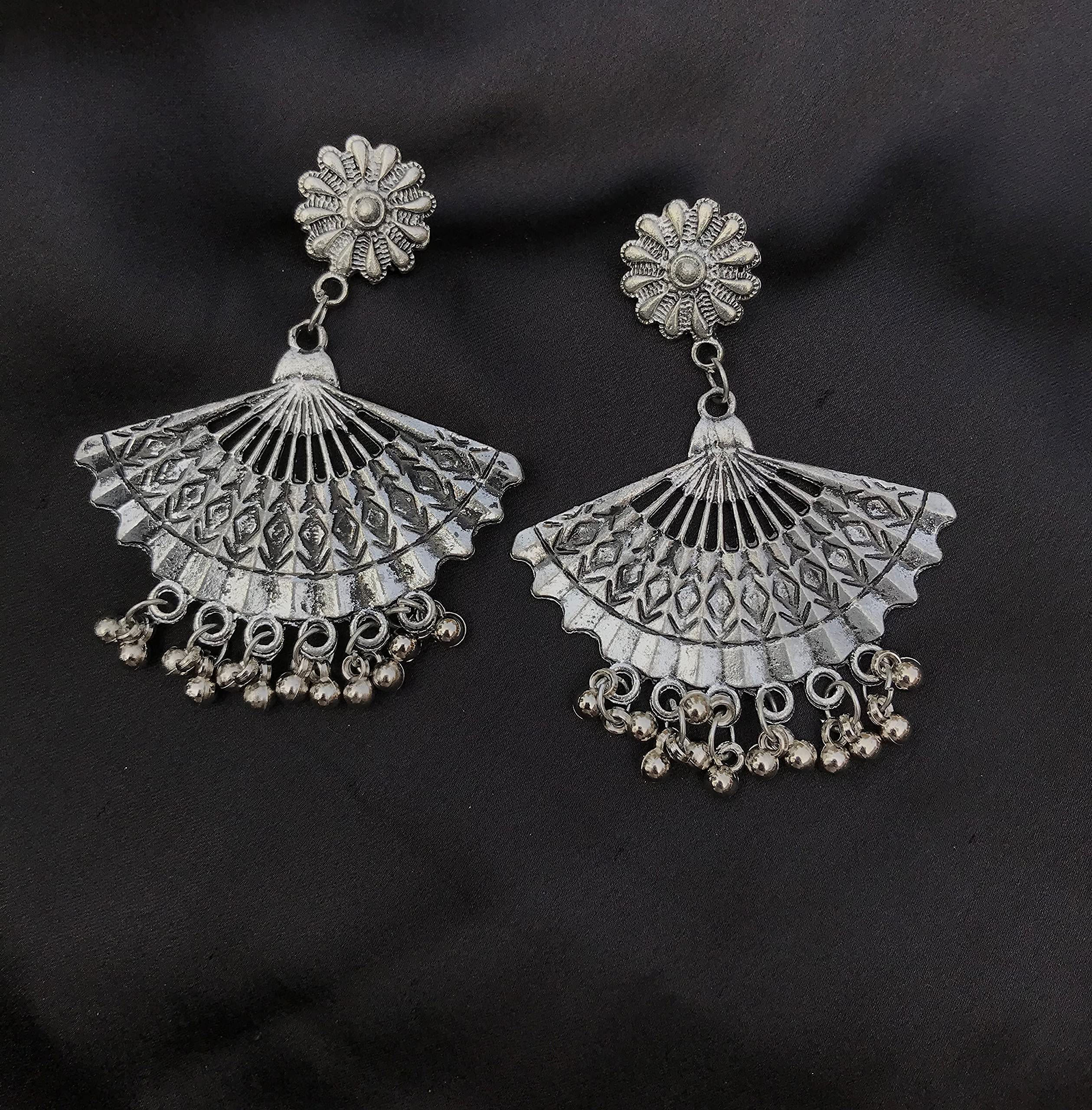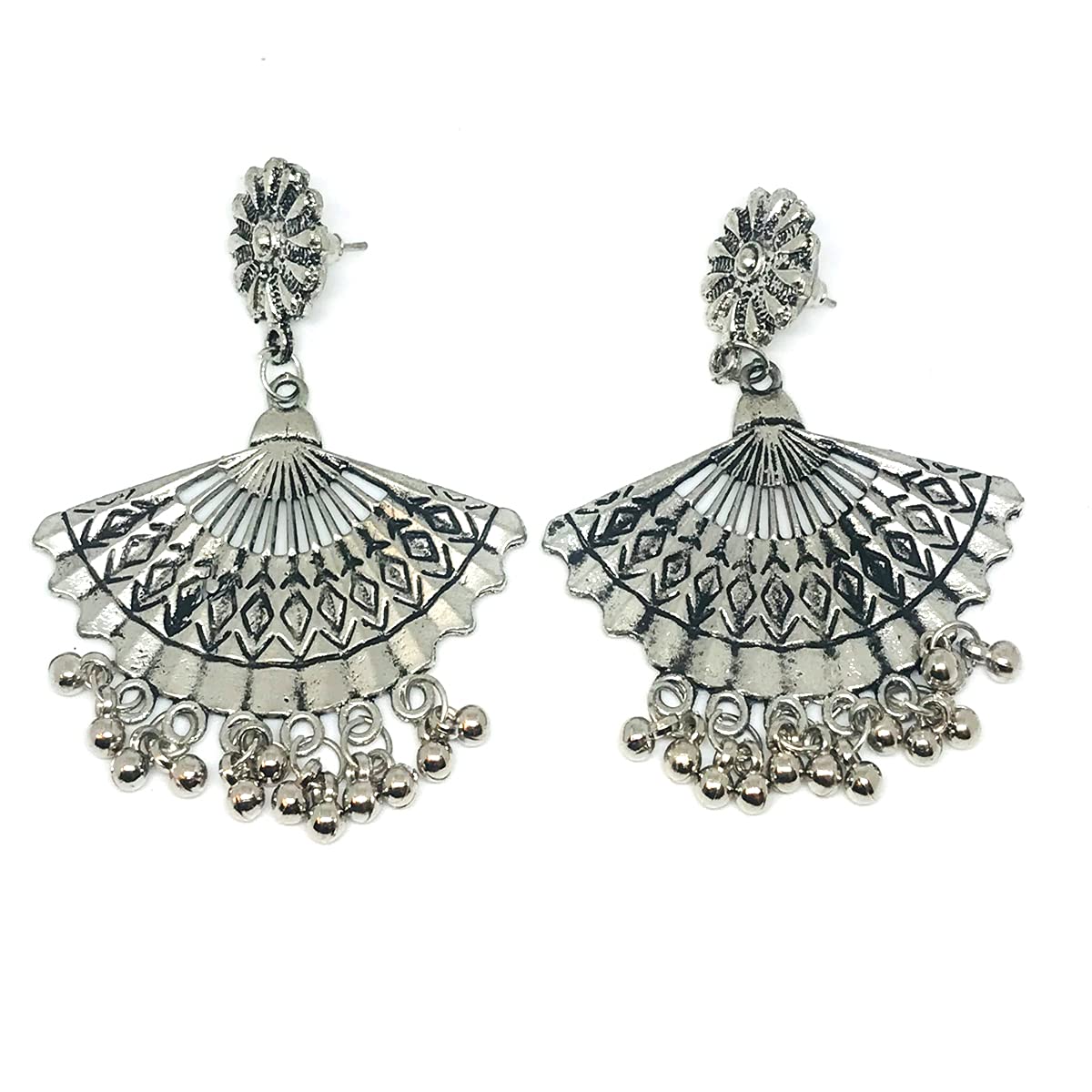 HomeFashionEarringsTIBETAN JEWELLERY Afghan Earrings Fan Design Design Earring with Ghunghroo Traditional Oxidised Metal Earrings for Women Brass Jewelry for Women Earrings for Ladies Tribal Earring Diwali Jewellery