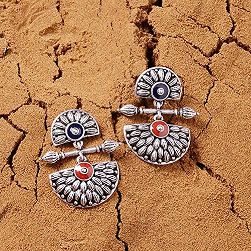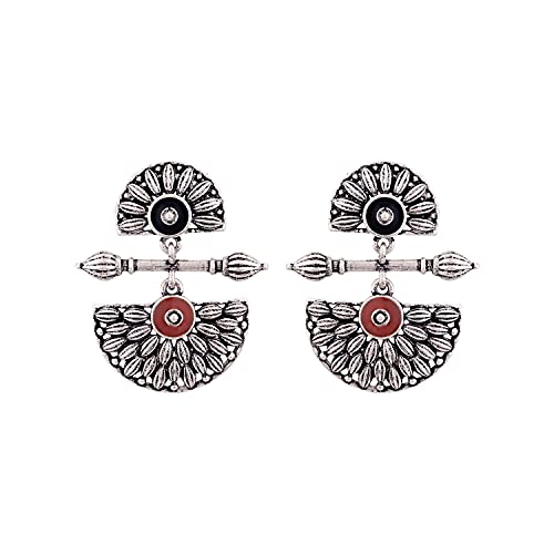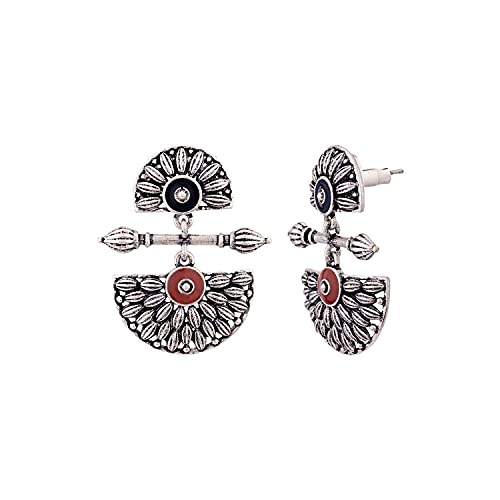 Voylla Brass Silver Mandala Design Lightly Embellished Drop Earrings for Women and Girls