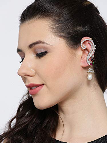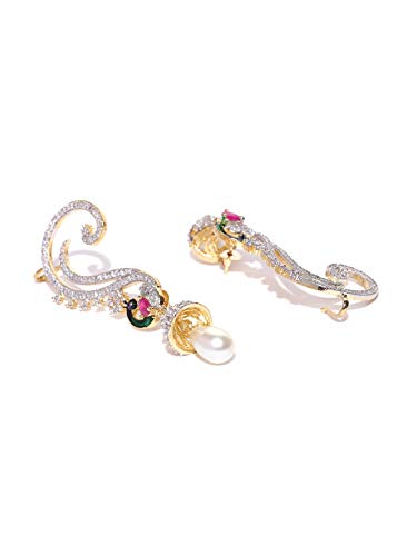 Youbella Gold Plated American Diamond Peacock Earcuff Earrings For Women And Girls