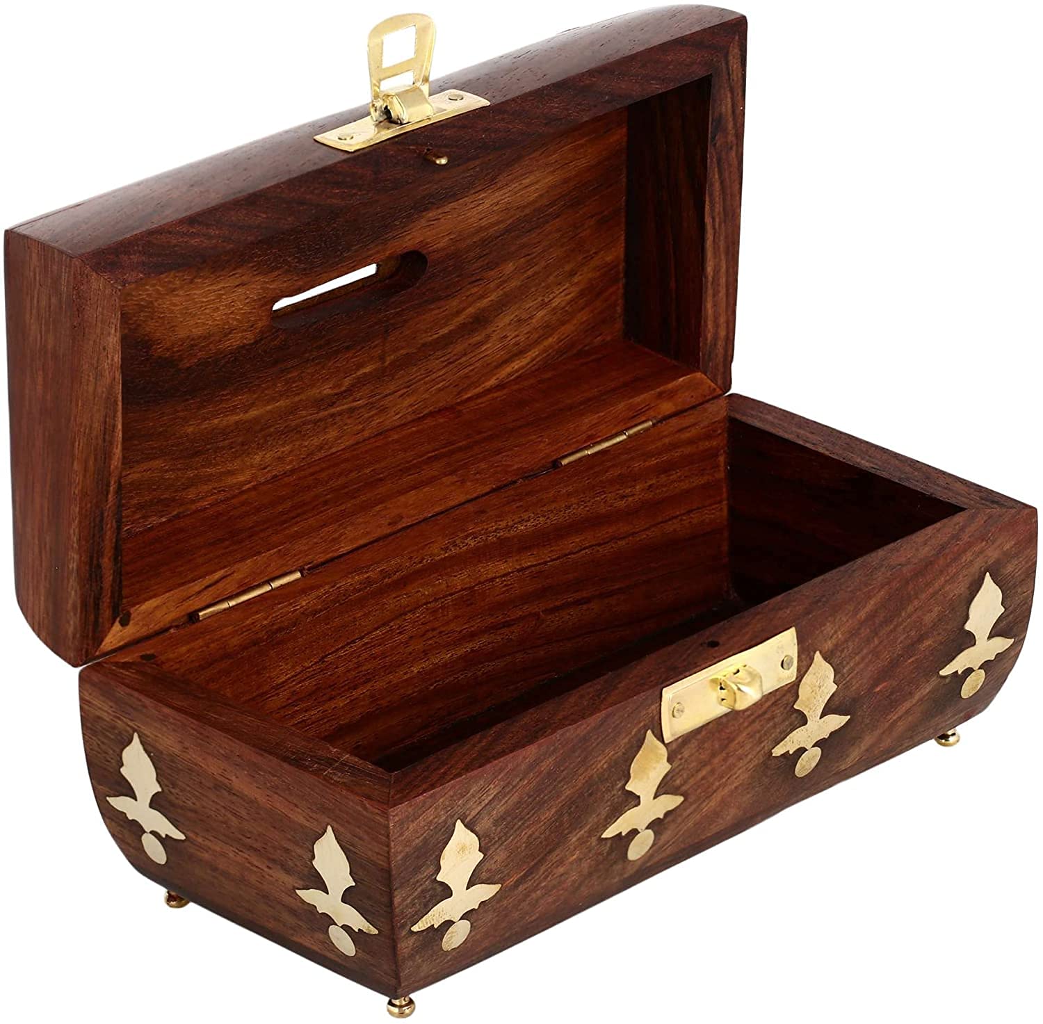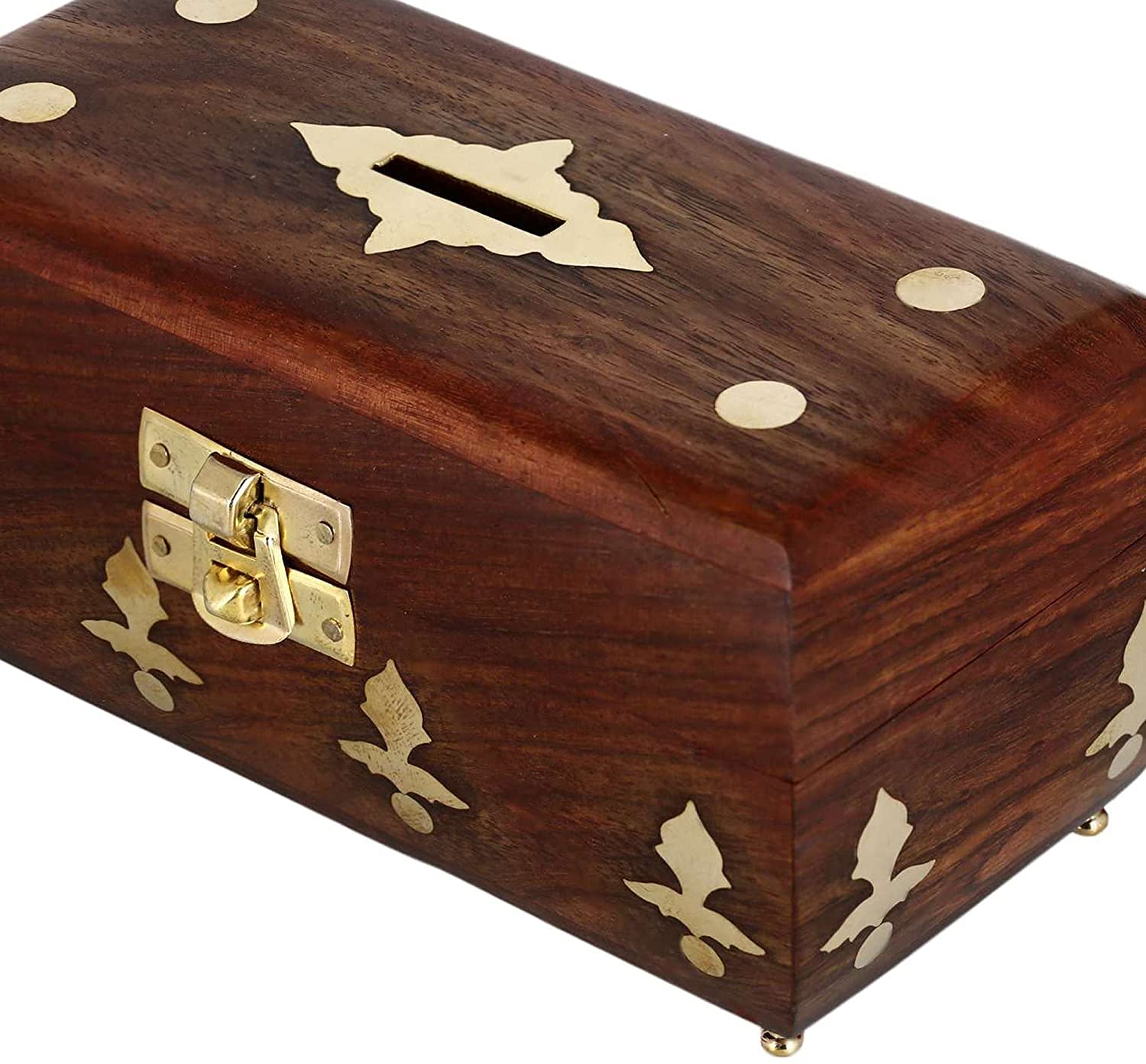 BIJNOR - METAL INLAY IN WOOD Handicrafted Wooden Money Bank - Coin Saving Box - Piggy Bank - Gifts for Kids Girls Boys & Adults