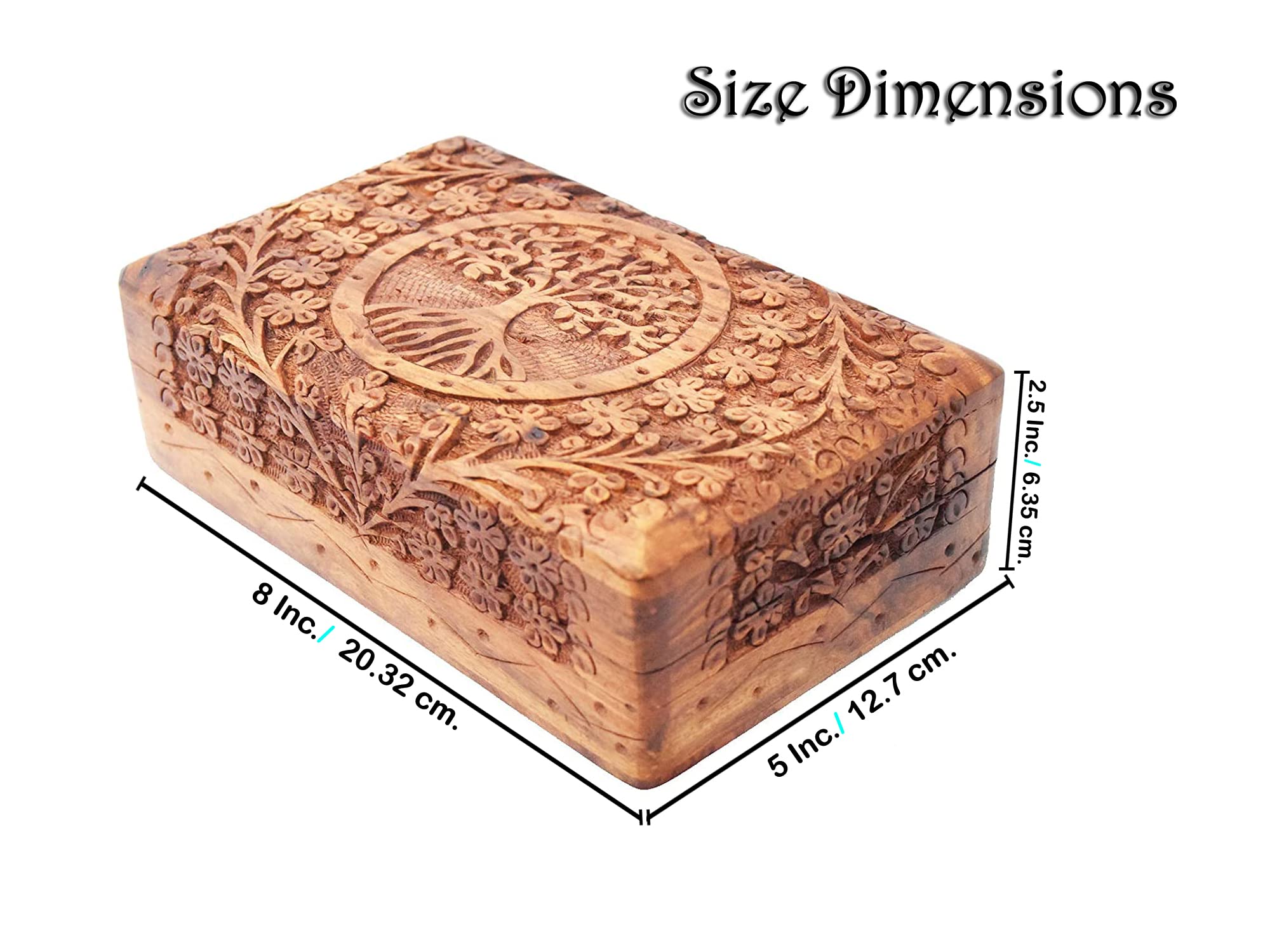 HomeFashionBoxes & HoldersBIJNOR - METAL INLAY IN WOOD Handmade Sheesham Wooden Storage Box Hand Carved Tree design Jewelry Box & Decorative Gift Box etc (7 X 5 Inch)